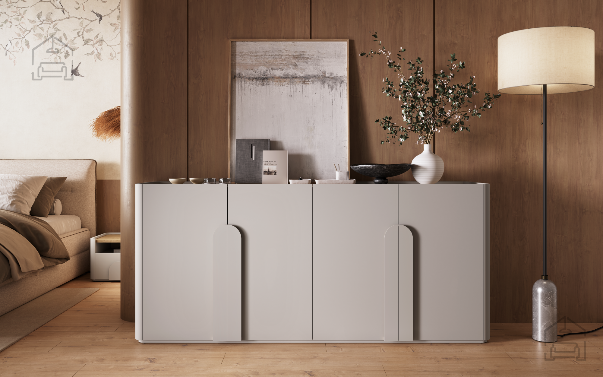 Komoda Amilio 200 4D – Bogart je premišljeno zasnovan kos pohištva, ki ponuja popolno ravnovesje med estetiko, funkcionalnostjo in trpežnostjo. Zaradi kakovostnih materialov, mehkih linij in praktične notranje razporeditve predstavlja dolgoročno naložbo v urejen in prijeten dom. Z njo lahko ustvarite prostor, ki izraža toplino, red in sodobno eleganco – brez kompromisov pri udobju ali videzu.