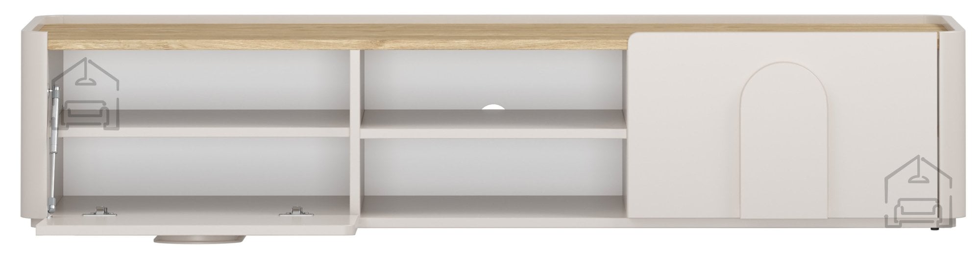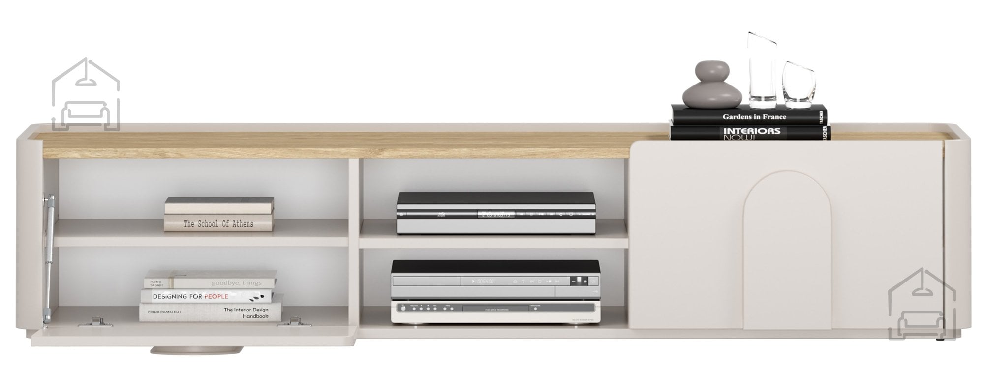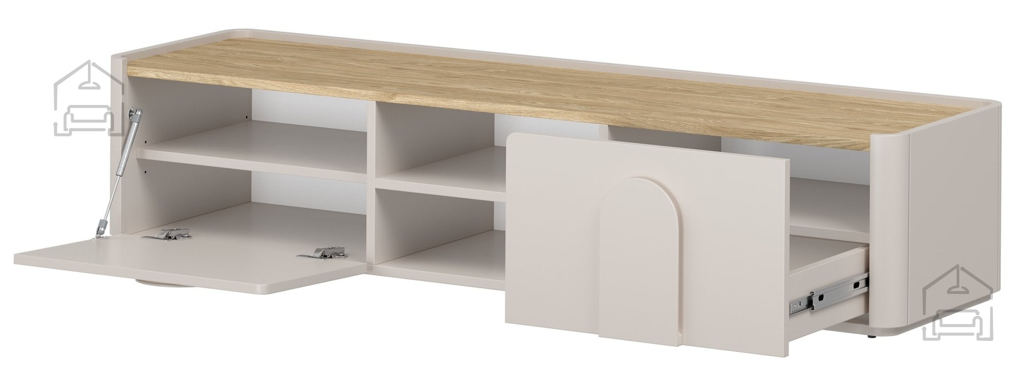 TV komoda Amilio 170 1K1SZ – Bogart je elegantna, praktična in premišljeno zasnovana rešitev za sodobne dnevne sobe. Z združitvijo kakovostnih materialov, nežnih barv in funkcionalnih detajlov omogoča prijetno izkušnjo uporabe in estetsko dovršen videz prostora. Njena kombinacija kašmirja in oljenega hrasta prinaša toplino in naraven pridih, ki se lepo ujema z različnimi notranjimi stili – od skandinavskega do urbanega minimalizma. To je kos pohištva, ki ne izstopa zaradi pretirane izjemnosti, temveč s svojo umirjeno lepoto in vsakodnevno uporabnostjo.