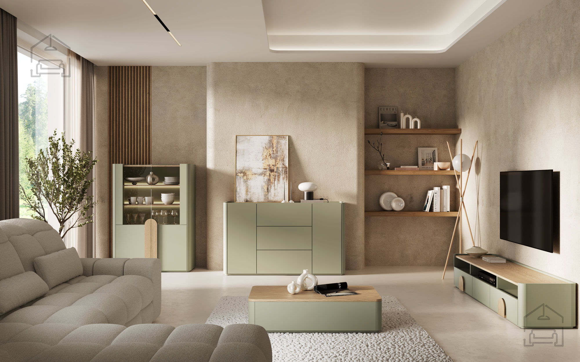 TV komoda Amilio 200 1K2SZ znamke Bogart združuje sodoben videz, skandinavski minimalizem in preudarno funkcionalnost, ki se popolnoma prilega današnjim bivalnim prostorom. Zasnovana je za ljubitelje urejenega doma, ki želijo praktično rešitev za shranjevanje in estetsko dopolnitev dnevne sobe. Njena barvna kombinacija evkaliptusa in hrasta baltic dune ustvarja naraven, topel vtis, ki ga poudarijo ročaji v naravnem hrastu. Komoda meri 200 × 48 × 35,5 cm in nudi dovolj prostora za televizor, sprejemnike, igralne konzole ter druge dodatke.
