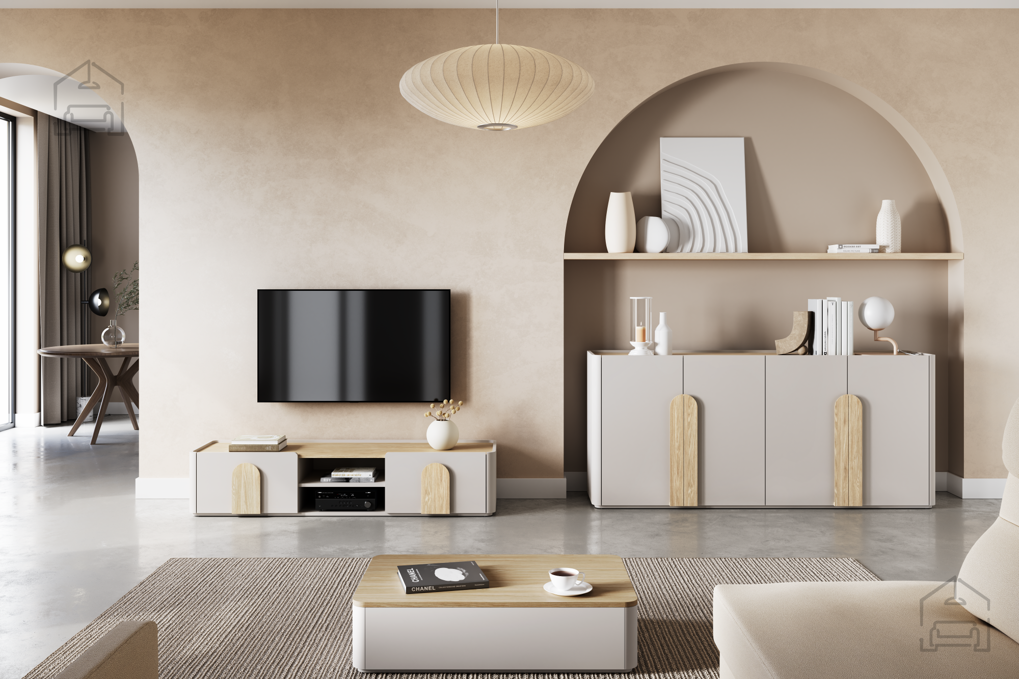 Kolekcija Amilio združuje toplino naravnega lesa z nežno eleganco odtenka kašmir. Gre za komplet pohištva, ki omogoča enotno opremo dnevne sobe in spalnice, kar ustvarja vizualno povezan, sodoben in prijeten ambient v vašem domu. Z uporabo kakovostnih materialov, kot sta melaminska plošča in MDF debeline 18 mm, ter HDF 3 mm za zadnje stranice, je zagotovljena visoka trdnost, stabilnost in dolga življenjska doba. Površine so enostavne za čiščenje, odporne na vsakodnevno uporabo, barvna kombinacija kašmirja in naoljenega hrasta pa poskrbi za naraven, topel videz.