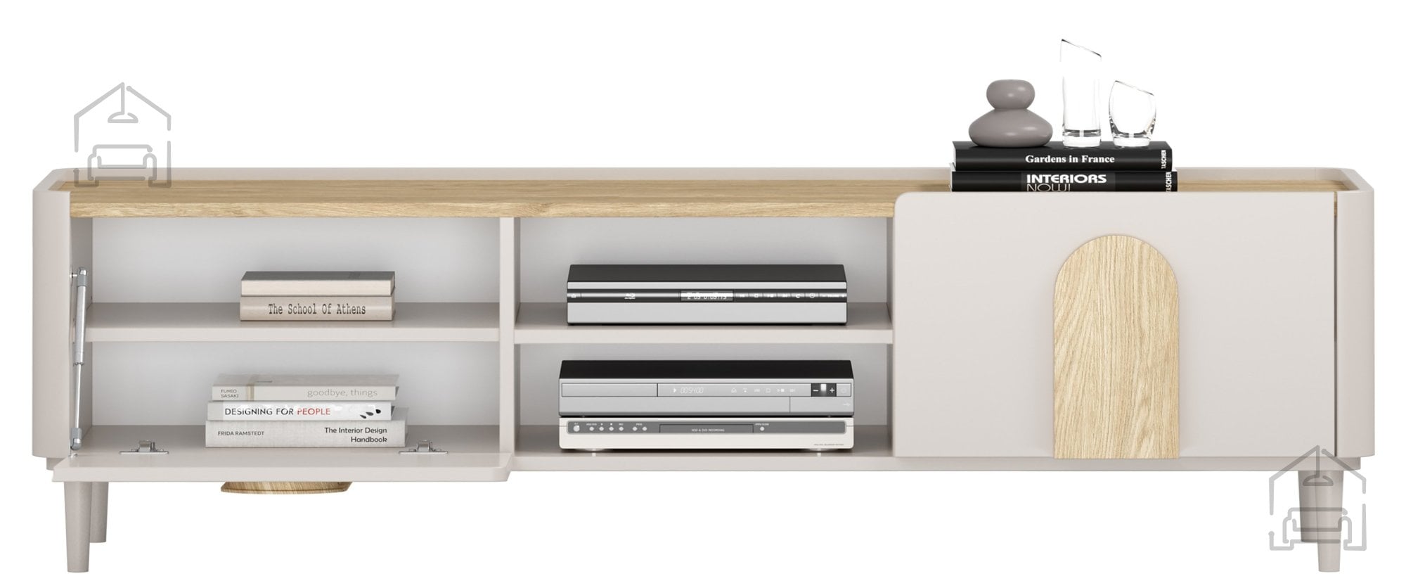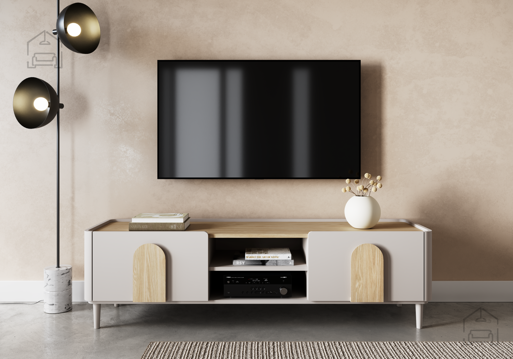 TV komoda Amilio 170 1K1SZ z nogicami – Bogart je torej praktična, estetska in kakovostno izdelana rešitev za vsak dom, ki ceni preprostost, funkcionalnost in toplino naravnih materialov. Združuje vse elemente sodobnega bivanja: lepo obliko, premišljeno funkcijo in trpežno strukturo. Njena umirjena barvna kombinacija in skandinavski značaj bosta vaš dnevni prostor spremenila v prijeten, harmoničen kotiček, kjer bo vsaka ura sprostitve še prijetnejša.