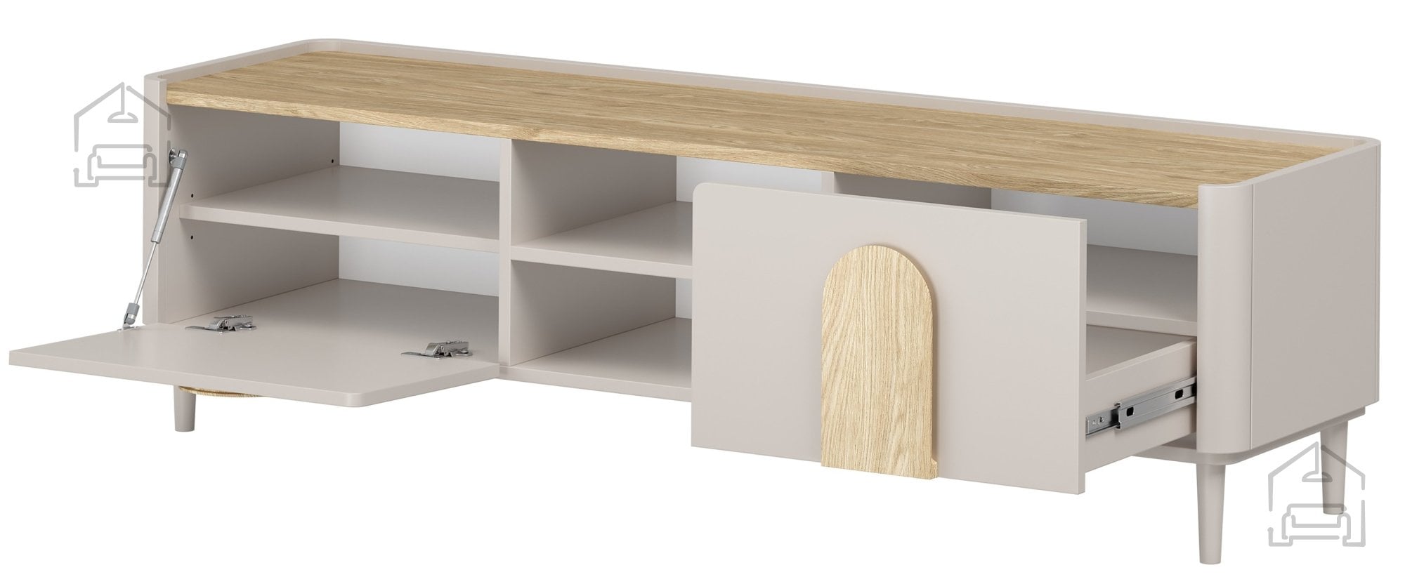 Melaminska plošča in bukov les: TV komoda Amilio 170 1K1SZ z nogicami – Bogart.