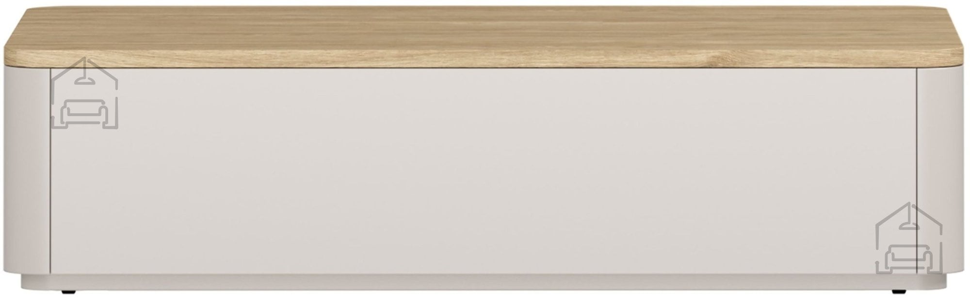 Njena nizka višina 25,5 cm ustvarja sodoben, prostoren občutek v prostoru, hkrati pa zagotavlja udobno višino za odlaganje vsakodnevnih predmetov. Čeprav zasnovana minimalistično, izstopa zaradi prefinjenih detajlov, kot so mehko zapiranje, odsotnost vidnih ročajev in harmoničen prehod med barvnimi površinami.