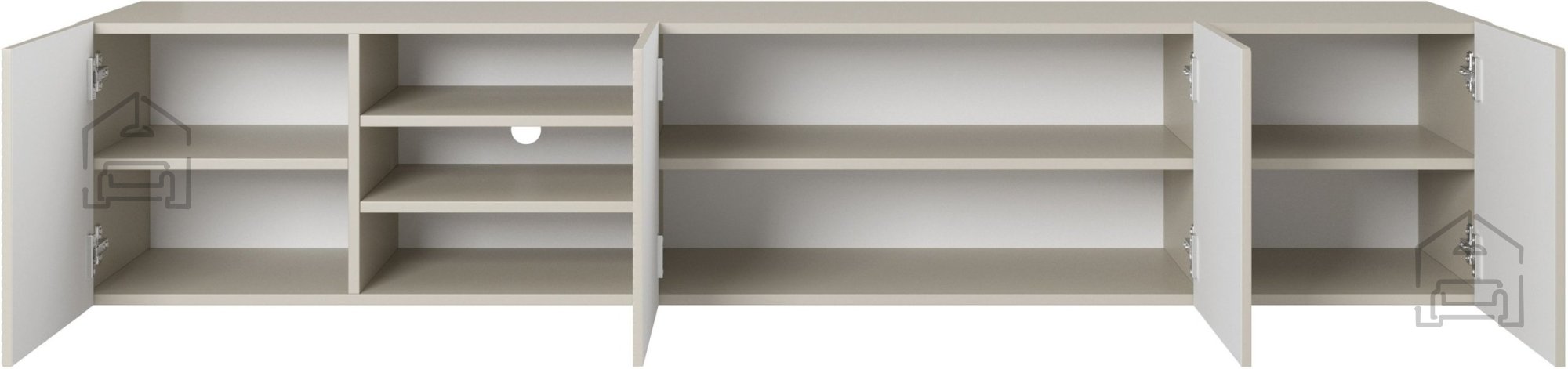 Stenska TV komoda Asha 200 5D – Bogart združuje estetiko, funkcionalnost in kakovostno izdelavo. S svojo prefinjeno barvo, natančno obdelanimi materiali in sodobnim sistemom odpiranja brez ročajev je odlična izbira za vsakega, ki želi v svoj dom vnesti eleganco in red. Idealna je tako za večje dnevne sobe kot tudi za manjše prostore, kjer je pomemben vsak centimeter površine in kjer pohištvo ne sme preobremeniti prostora.