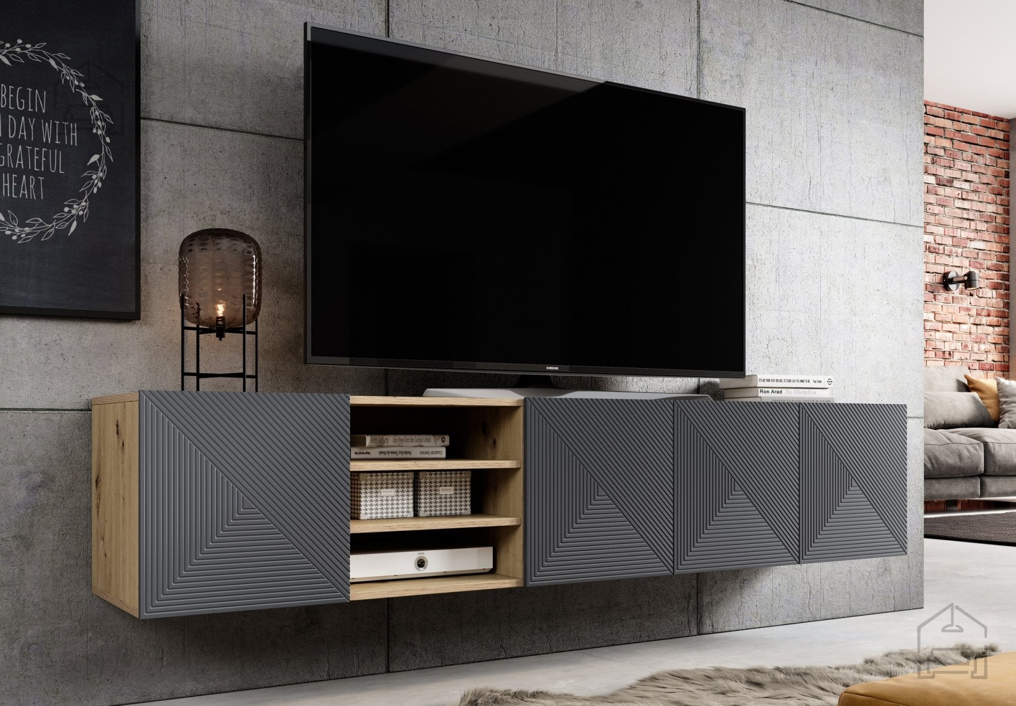 Elegantna in funkcionalna stenska TV komoda s policami Asha 200 5D znamke Bogart združuje sodoben dizajn in praktičnost. Izdelana je iz kakovostnih materialov, ki zagotavljajo trajnost in stabilnost, hkrati pa njen videz v barvni kombinaciji river stone/hrast artisan prinaša toplino in prefinjen kontrast v dnevni prostor. Komoda je zasnovana kot viseči element, zato omogoča enostavno čiščenje tal in vizualno razbremeni prostor.