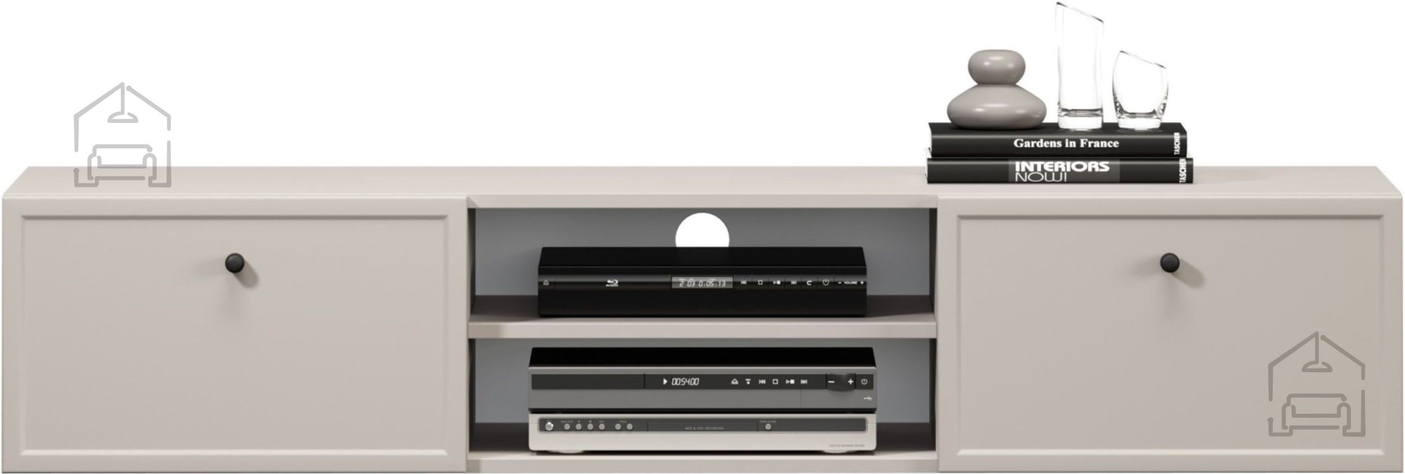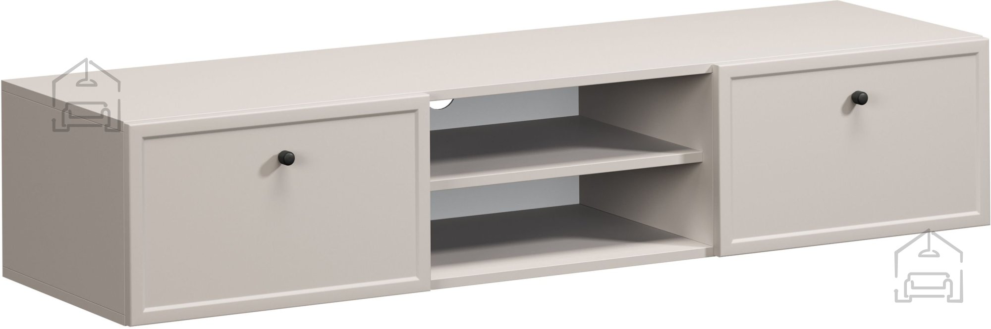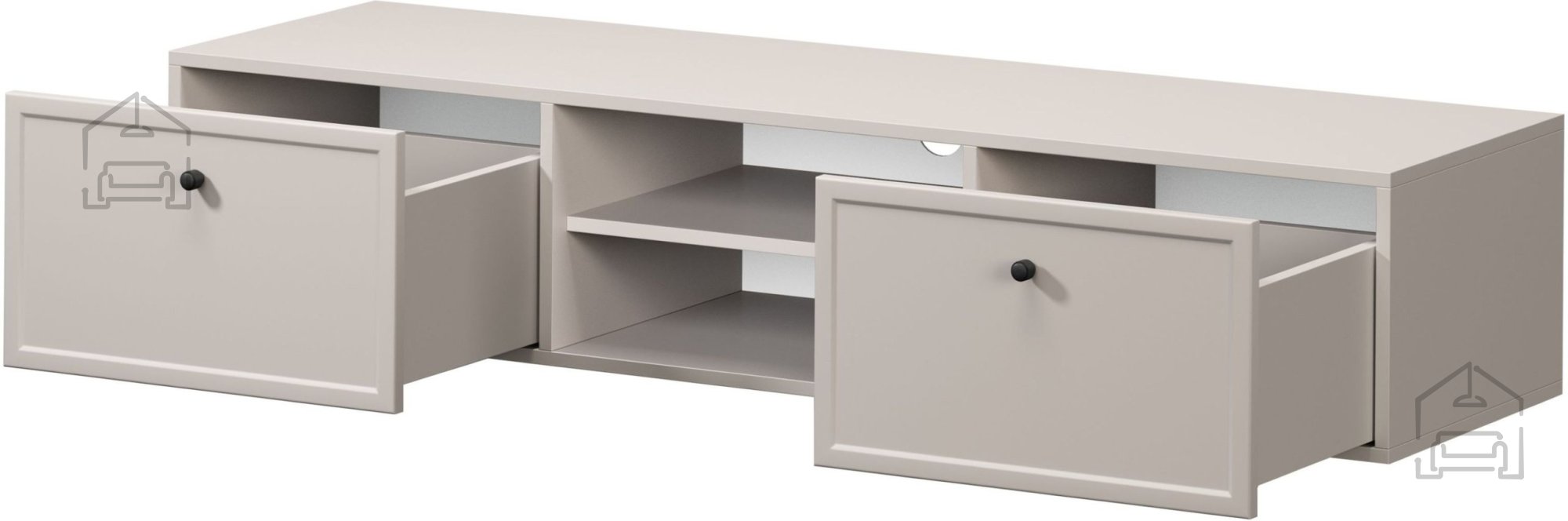 Komoda Lorini vsebuje dva predala in dva odprta prostora, kar omogoča pregledno shranjevanje različnih predmetov. Predali so nameščeni na vodilih z mehkim zapiranjem (soft‑close), ki zagotavljajo tiho in nežno delovanje. Takšen sistem preprečuje udarce ob zapiranju in s tem podaljšuje življenjsko dobo mehanizma. Odprt prostor je primeren za multimedijske naprave, kot so DVD‑predvajalniki, igralne konzole ali sprejemniki, medtem ko predali ponujajo prostor za drobne dodatke, daljince in kable.