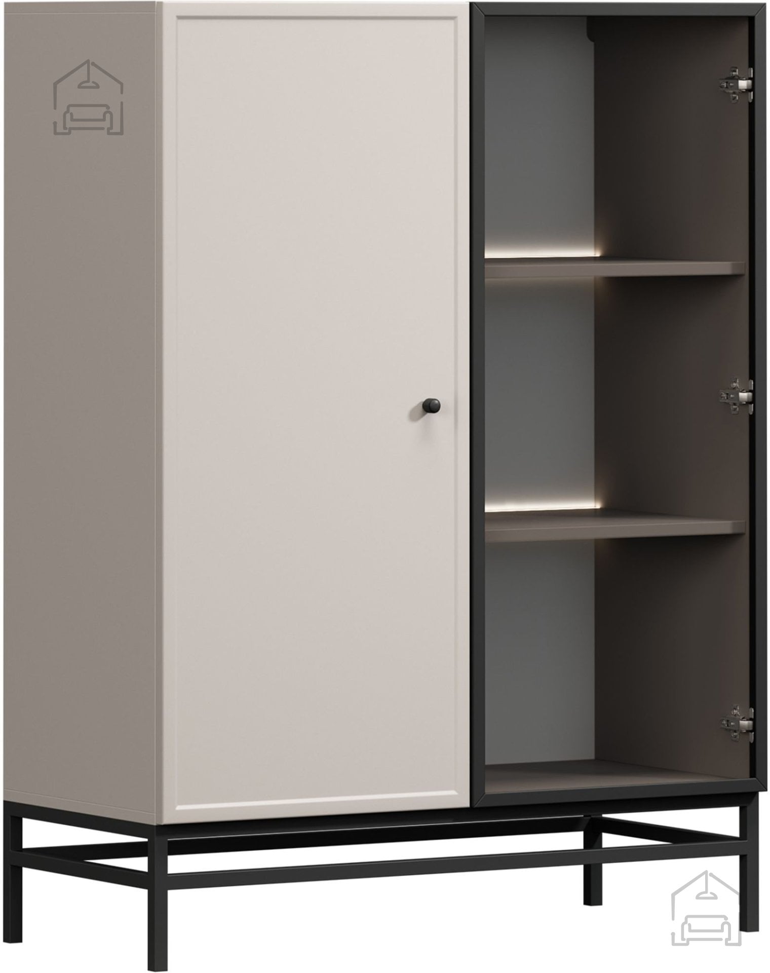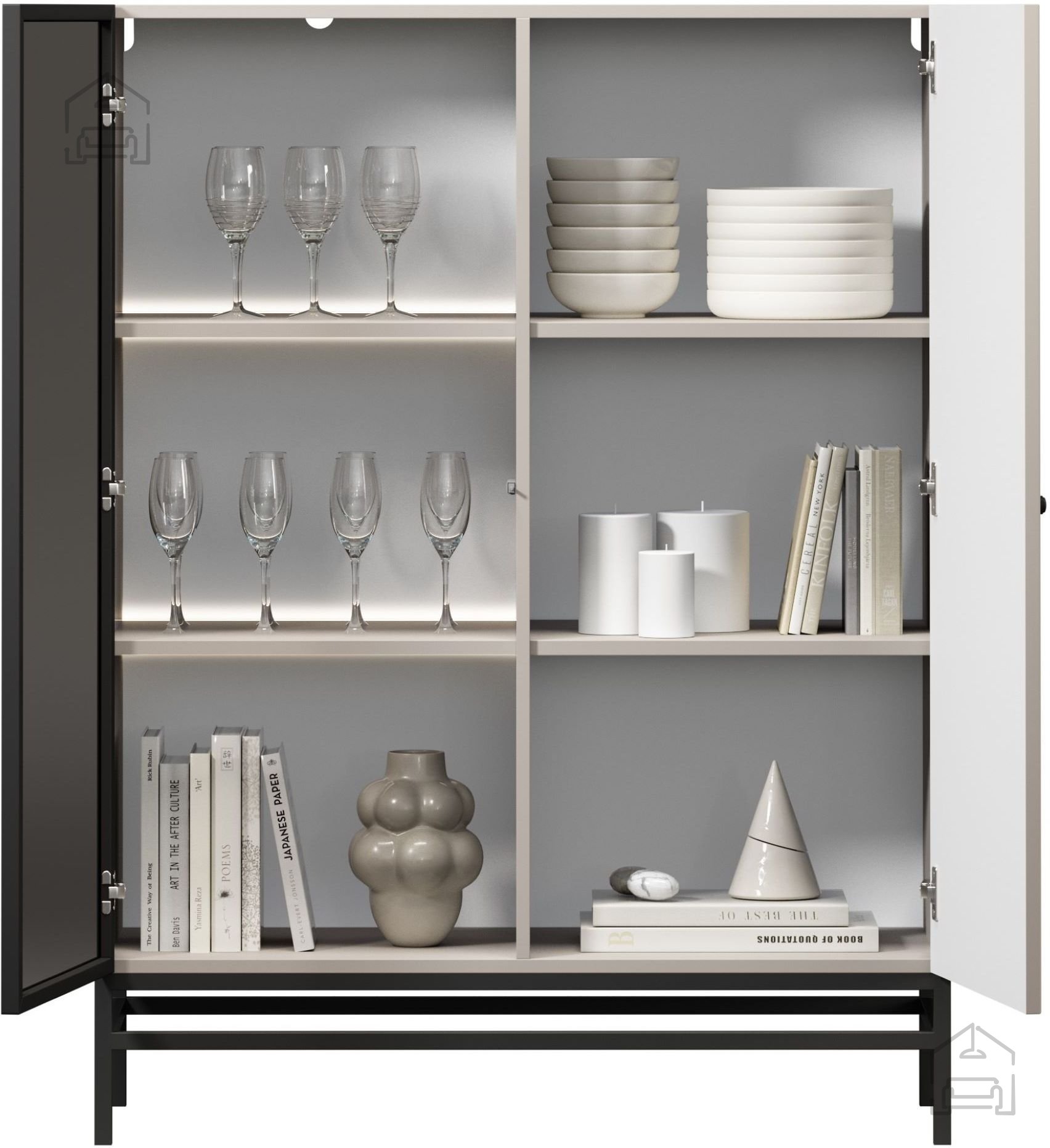 Vitrina Lorini – Bogart je zasnovana za tiste, ki cenijo estetiko, a ne želijo sklepanja kompromisov glede uporabnosti. Njen uravnotežen dizajn omogoča, da se poda tako k modernim minimalističnim ambientom kot tudi k toplejšim, klasično opremljenim prostorom. Črne kovinske noge in ročaji ustvarjajo subtilen kontrast s svetlo površino, kar prispeva k vizualni dinamiki. Višina nog olajša gibanje zraka in čiščenje, LED osvetlitev pa dodatno poudari estetsko vrednost vitrine.