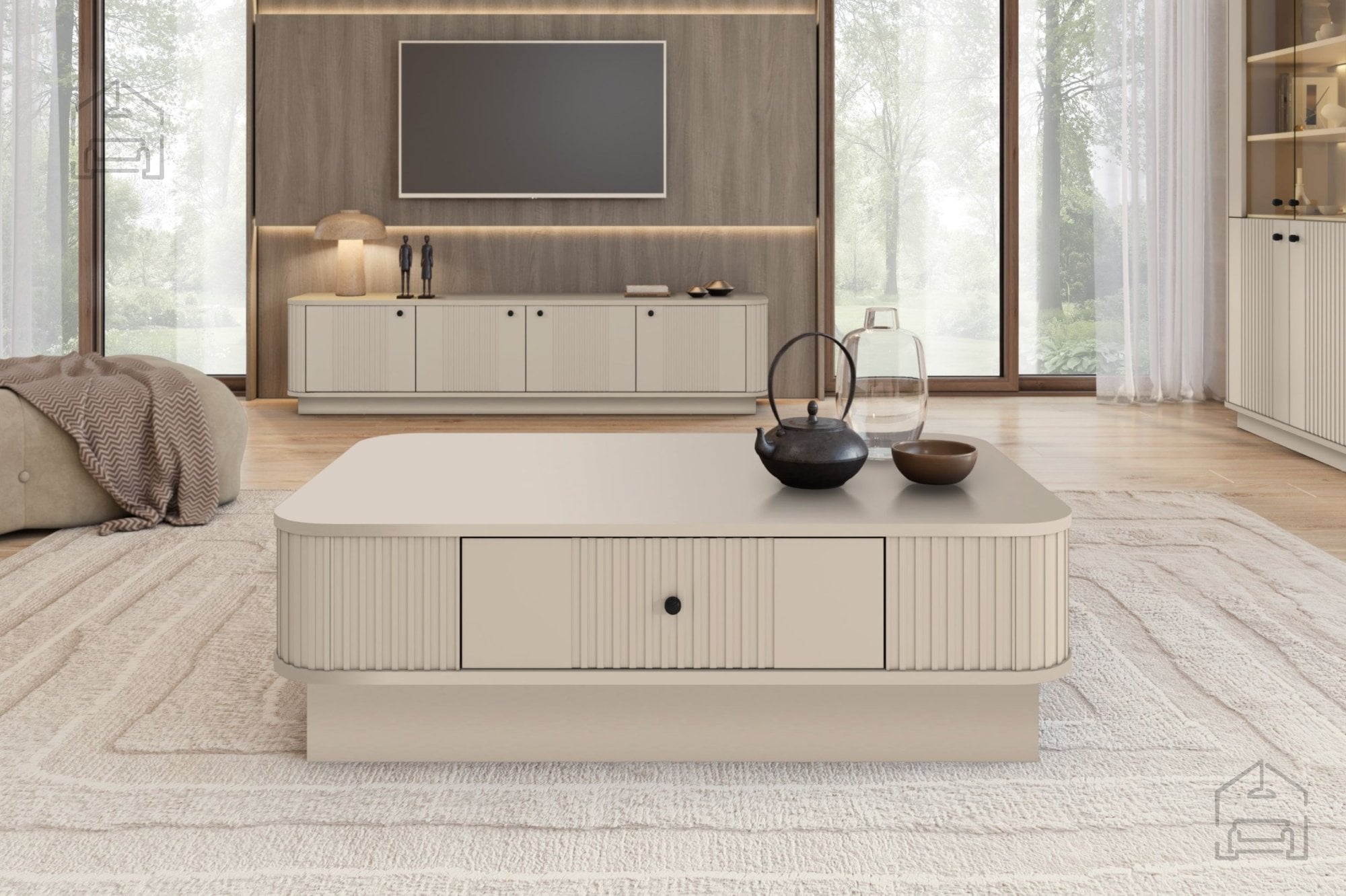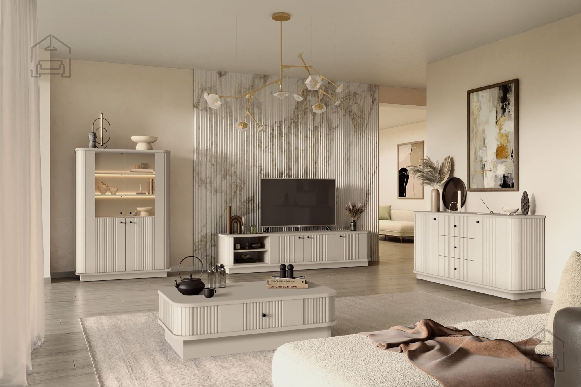 Kolekcija dnevna soba in spalnica Vesper na čoklu – Bogart je popolna rešitev za tiste, ki želijo povezati funkcionalnost in estetiko v celovit notranji koncept. Z enotno barvno shemo, kakovostnimi materiali in prefinjenimi detajli omogoča ustvarjanje prostora, kjer se prepletata udobje in eleganca. Pohištvo v kašmir barvi se ne podreja trendom, temveč ustvarja brezčasno osnovo, ki jo lahko dopolnite po lastnem okusu.