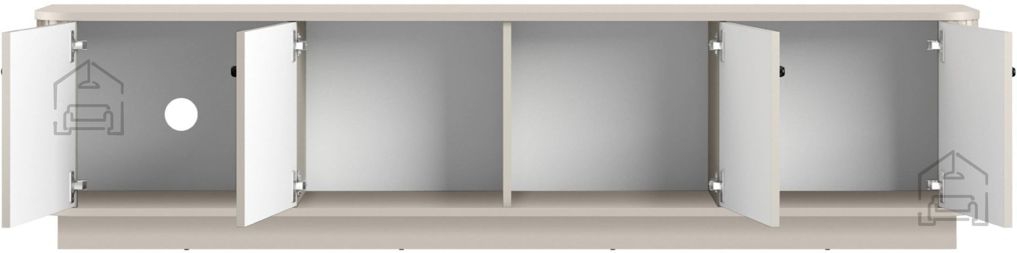 TV komoda Vesper je zasnovana za sodobna bivališča, kjer sta estetika in funkcionalnost enakovredni. Idealna je za dnevne sobe, manjše apartmaje ali odprte bivalne prostore, kjer je pomembna optimizacija prostora. Na zgornjo ploščo lahko namestite televizor, dekorativne elemente ali svetila, medtem ko notranji predelki ohranjajo red in diskretnost. Zaradi nevtralne barve kašmir se lepo dopolnjuje z lesenimi toni, sivimi, bež ali črnimi dodatki.