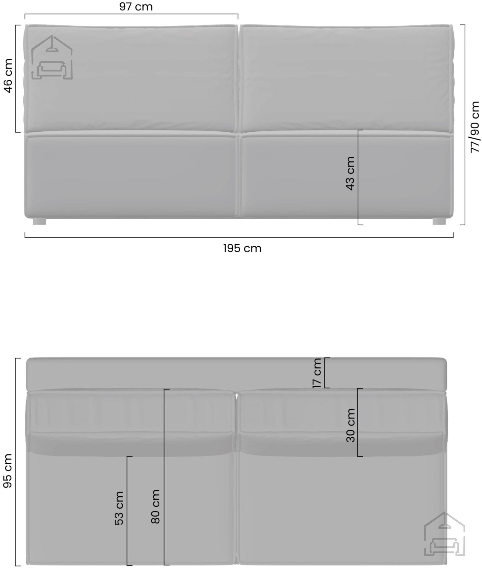 • Dimenzije troseda: 195×95×90 cm