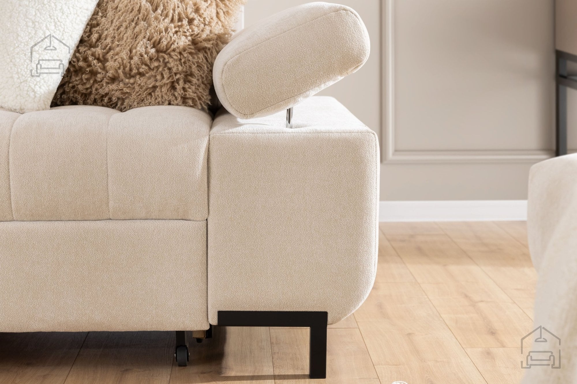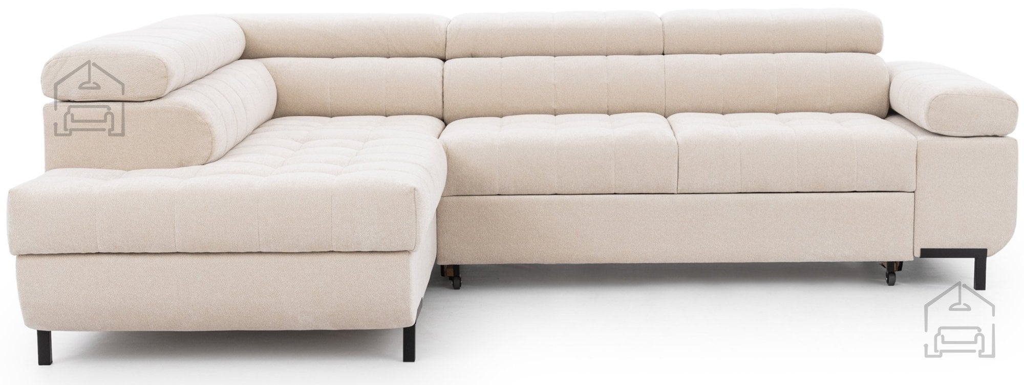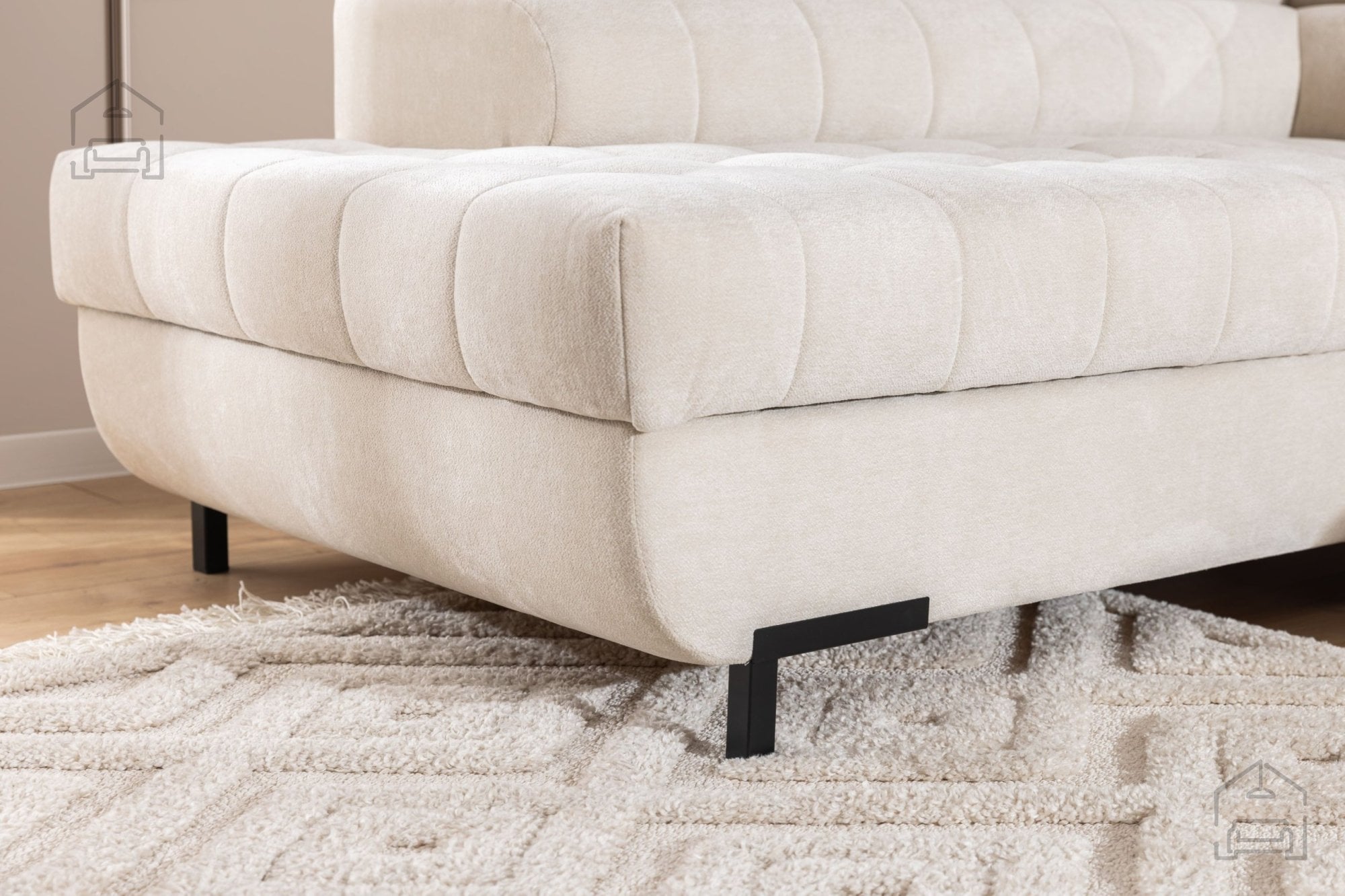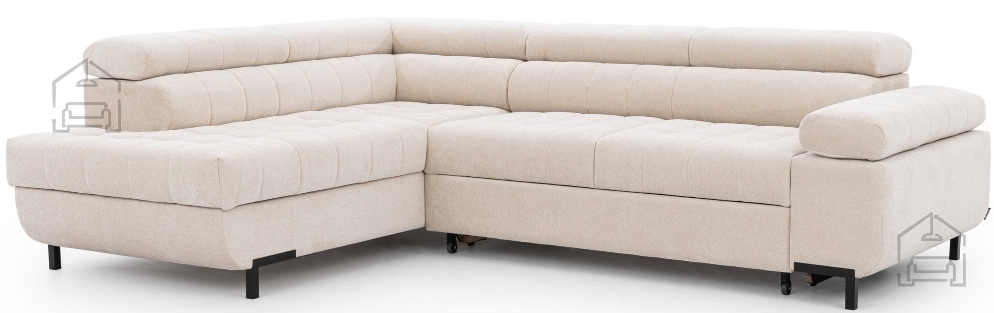 Tyrion L je ustvarjen z mislijo na sodobne interierje, kjer se funkcionalnost sreča z minimalistično eleganco. Njegove čiste linije, prefinjeni šivi in kovinske noge v črni barvi ustvarjajo moderen videz, ki se lepo ujema z različnimi barvnimi odtenki tkanine. Garnitura je na voljo v več barvah, zato jo je mogoče prilagoditi tako klasičnim kot sodobnim bivalnim prostorom.