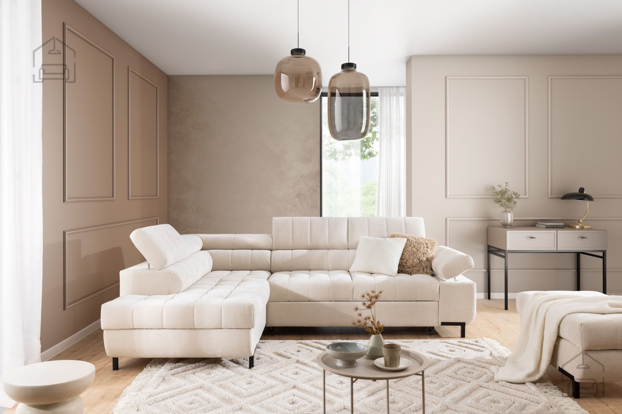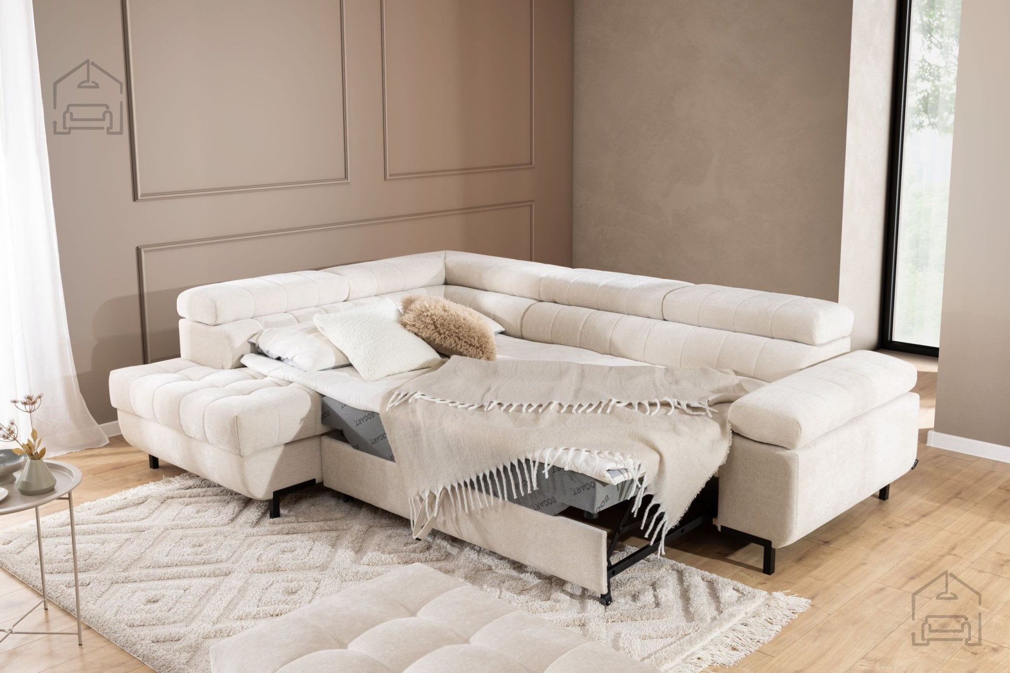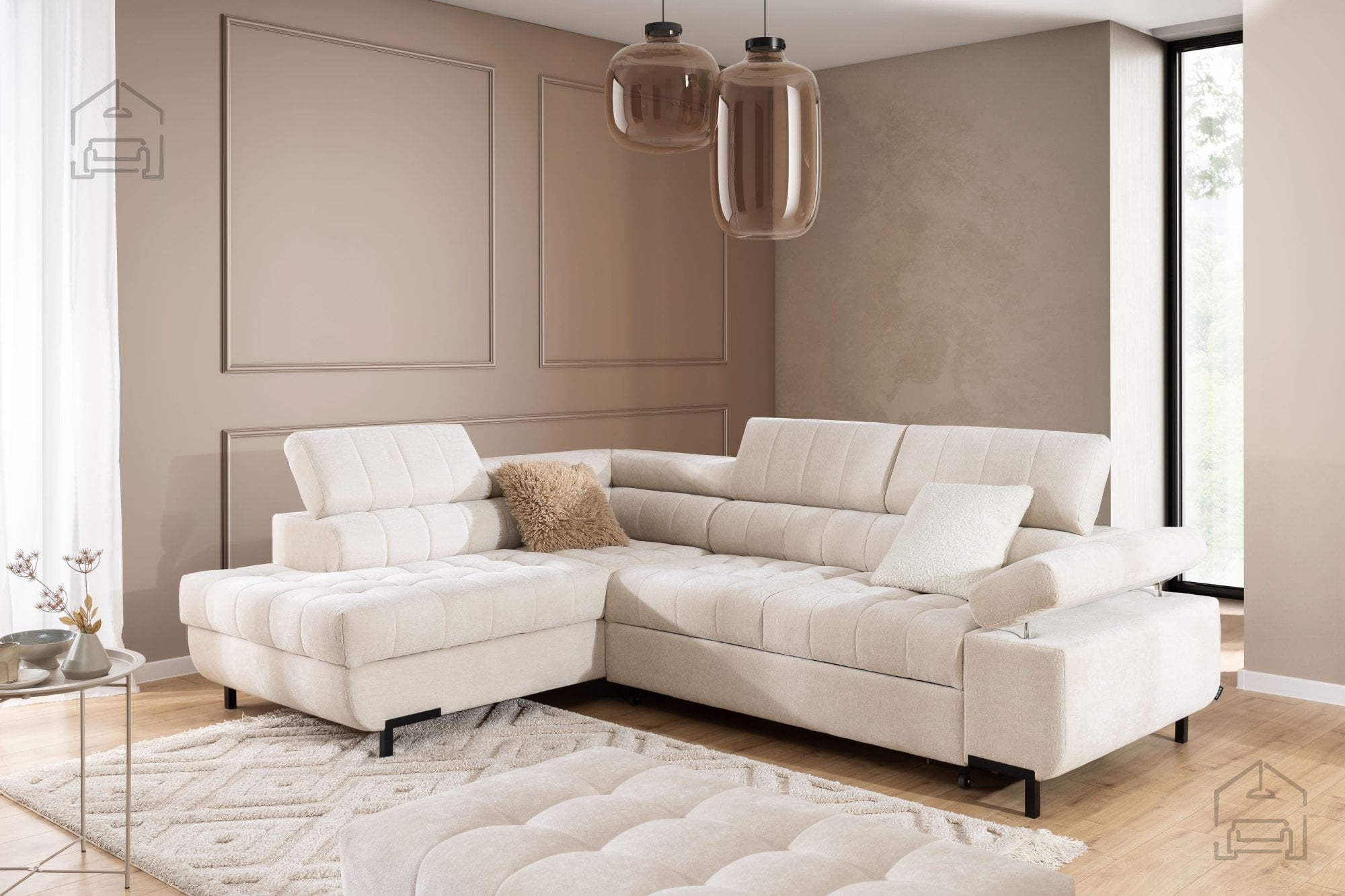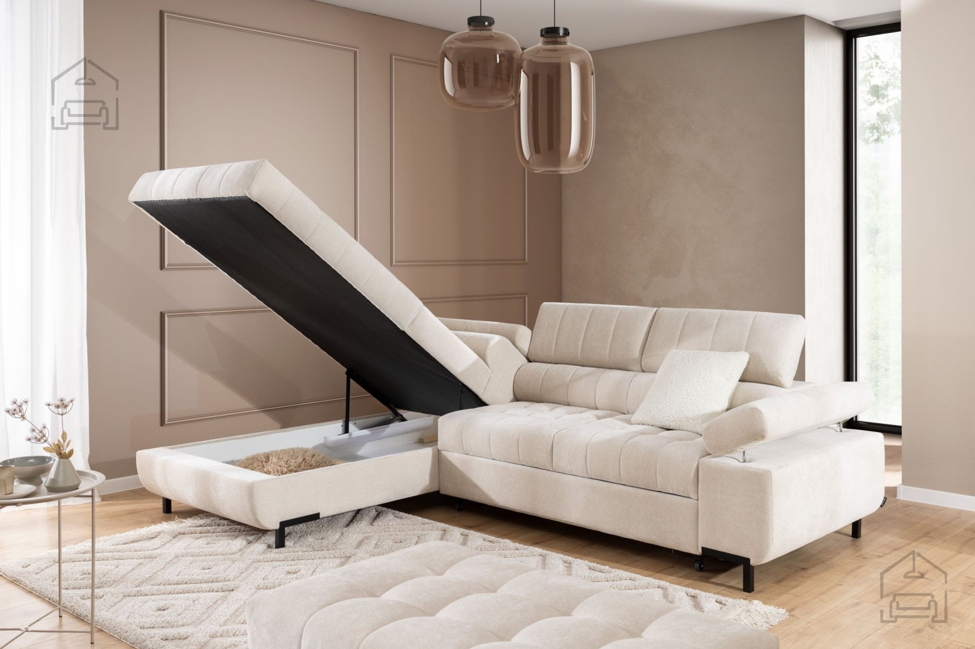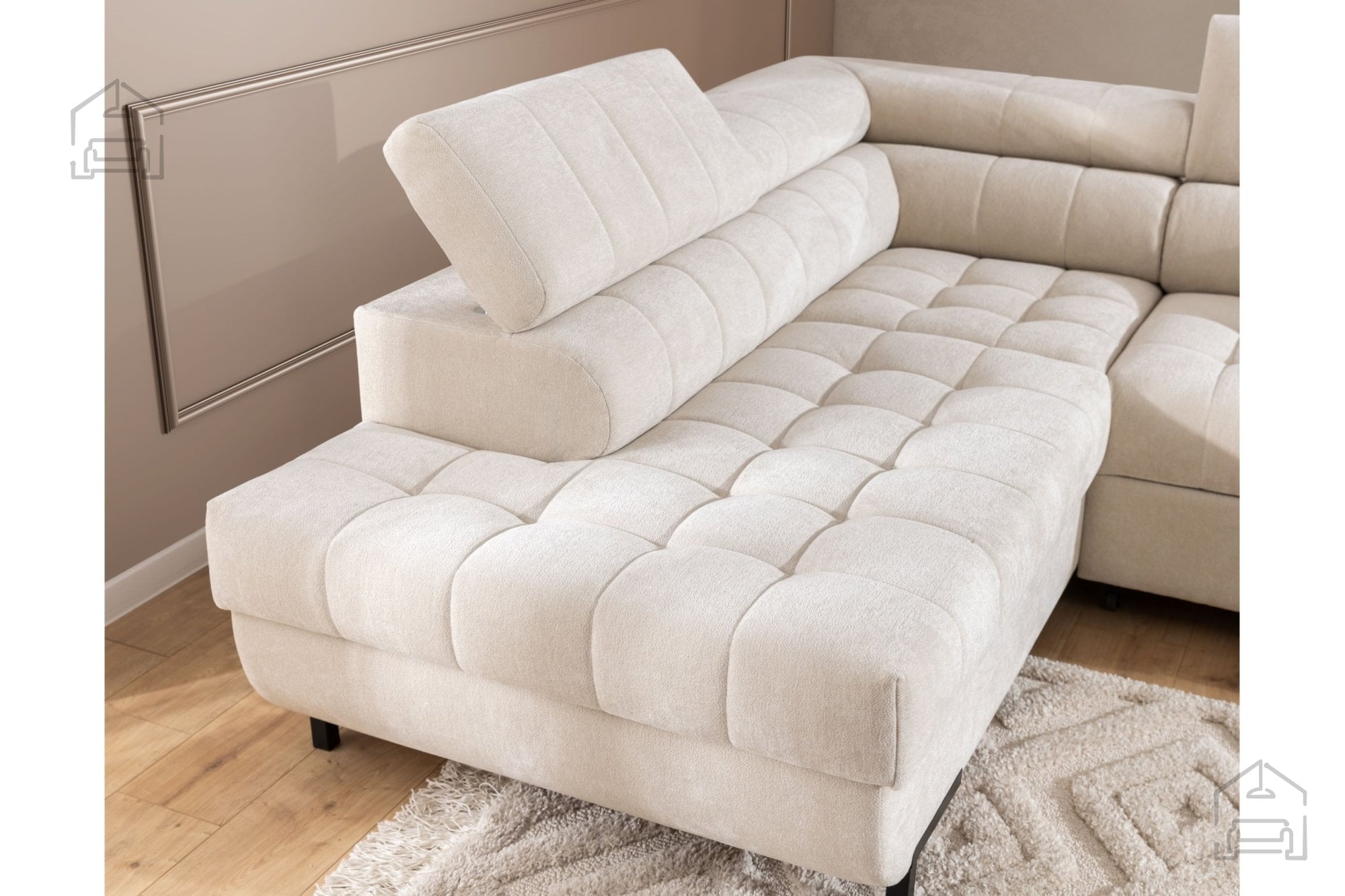 Kotna sedežna garnitura Tyrion L – Sedežne garniture Bogart je popolna izbira za vse, ki iščejo sodobno, funkcionalno in udobno rešitev za svoj dnevni prostor. Njen prefinjen dizajn, kakovostna izdelava in praktični dodatki, kot sta ležišče in predal za shranjevanje, jo uvrščajo med najbolj vsestranske garniture v svojem razredu. Z možnostjo izbire barve in nastavljivimi vzglavniki ponuja popolno kombinacijo personalizacije, udobja in estetike, ki se brez težav prilagodi vašemu življenjskemu slogu.