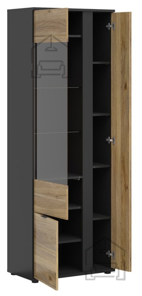 Vitrina Luen je izraz sodobnega oblikovanja, ki združuje eleganco in funkcionalnost v enem kosu pohištva. Z dimenzijami 70x39,5x196 cm je popolna izbira za tiste, ki iščejo razstavni prostor in hkrati dodatno shranjevalno rešitev. Natančna izdelava podjetja Black Red White iz Poljske zagotavlja kakovost, ki traja, medtem ko kombinacija barv hrast Taegola, hrast Mauvella in črna mat ustvarja sodoben, a topel videz, primeren za različne stile notranje opreme.