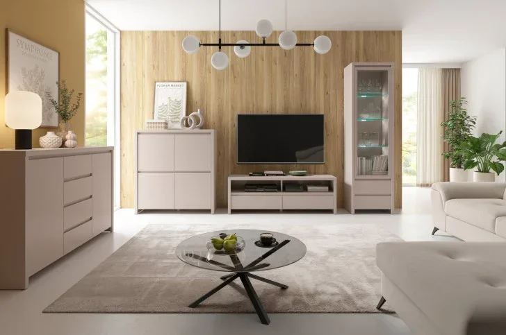 Videz komode Kaspian v barvi kašmir odraža sodobno minimalistično estetiko. Gladke površine, odsotnost ročajev in enostavne linije ustvarjajo občutek lahkotnosti in reda. Nevtralna barva omogoča kombiniranje z lesenimi, kovinskimi ali tekstilnimi dodatki. Komoda se tako lahko spremeni v osrednji del dnevne sobe ali discrete dopolnilo spalnice, kjer poudari miren značaj prostora.