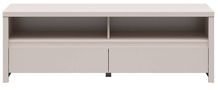 Komoda ponuja praktičen prostor za shranjevanje, ki je razdeljen na odprto polico in dva predala. Odprta polica omogoča priročno postavitev multimedijskih naprav, kot so sprejemniki, igralne konzole ali predvajalniki, medtem ko sta predala namenjena shranjevanju kablov, daljinskih upravljalnikov, dokumentov ali drugih drobnih predmetov. Taka razporeditev omogoča urejen videz prostora in hkrati ohranja vse potrebne predmete pri roki.