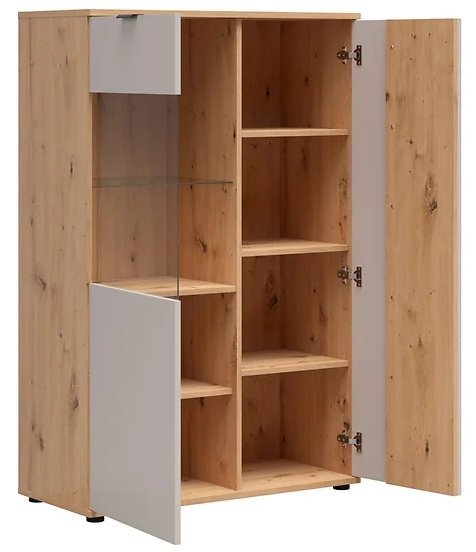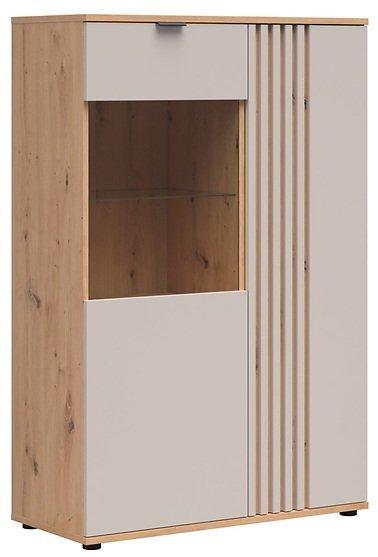 Vitrina Brevas predstavlja dovršeno ravnovesje med funkcionalnostjo in estetiko. Poljski proizvajalec Black Red White je poznan po kakovostnih rešitvah za sodobne interierje, pri čemer ta model izstopa s premišljeno zasnovo in harmonično kombinacijo barv. Kašmirski odtenek v kombinaciji z dekorjem hrast artisan ustvari topel, prijeten vtis, ki se poda različnim slogom opreme – od minimalističnega do industrijskega.