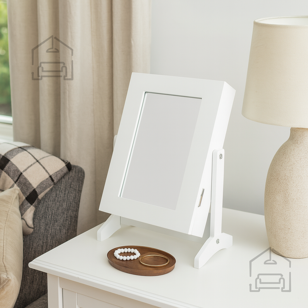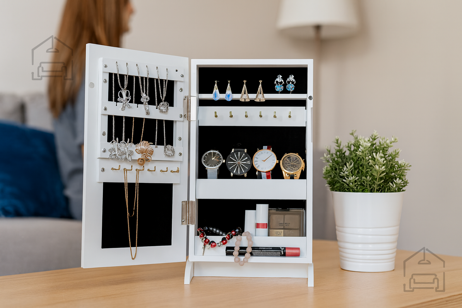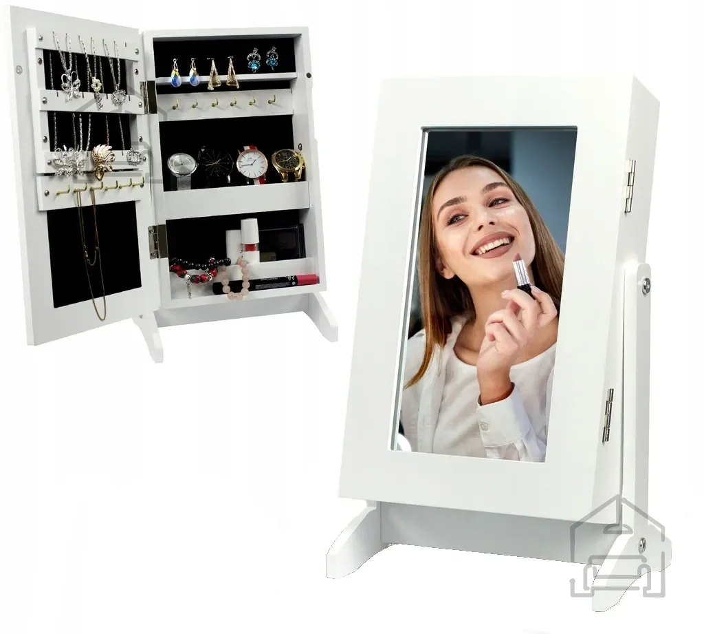 Omarica za nakit z ogledalom je odlična izbira za vse, ki cenijo urejenost in estetiko. Primerna je tako za posameznike, ki imajo bogato zbirko nakita, kot tudi za tiste, ki iščejo eleganten prostor za shranjevanje nekaj najljubših kosov. Njena praktična zasnova omogoča, da imate vse kose vedno na dosegu roke, hkrati pa notranja razporeditev preprečuje, da bi se nakit zapletel ali izgubil. Zaradi svoje univerzalne oblike in barve je tudi popolno darilo – bodisi za rojstni dan, obletnico ali kot pozornost ob posebni priložnosti.