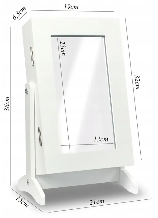 Zaradi svojih kompaktnih mer (21×15×35 cm) je omara za nakit z ogledalom Chomik primerna tako za manjše toaletne mizice kot tudi za večje garderobne prostore. Lahko jo uporabite kot samostojen dekorativni element ali pa jo kombinirate z drugimi kosi pohištva iste barvne palete. Zaradi svoje nevtralne barve se odlično ujema z naravnimi materiali, kot sta les in lan, pa tudi z modernimi elementi iz kovine ali stekla. Postavite jo lahko v spalnico, kopalnico ali celo hodnik – povsod bo pritegnila pozornost s svojo diskretno eleganco in hkrati uporabnostjo.