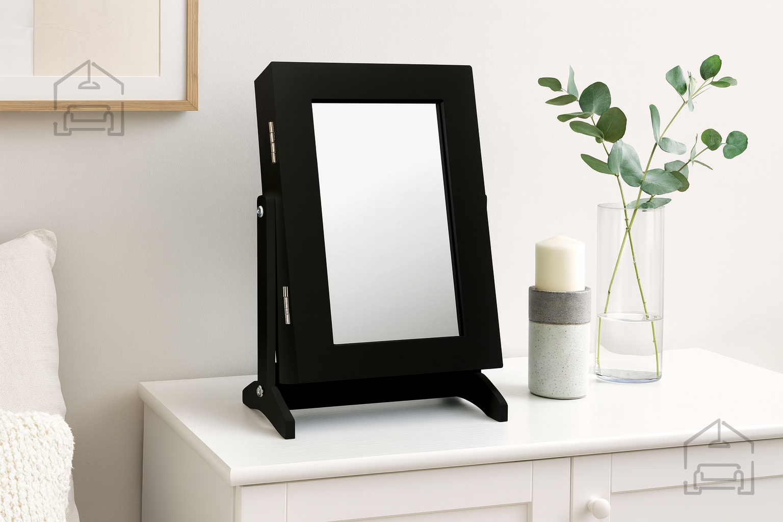 Omara za nakit z ogledalom Chomik ni le funkcionalen pripomoček, temveč tudi dekorativni element, ki dopolni vsak prostor. Njena črna barva deluje elegantno in nevtralno, zato jo lahko kombinirate z različnimi barvnimi paletami in materiali – od svetlega lesa do kovinskih poudarkov. Z minimalističnim dizajnom se lepo poda tako v ženske kot moške prostore, saj ponuja diskreten, a sofisticiran način shranjevanja dodatkov.
