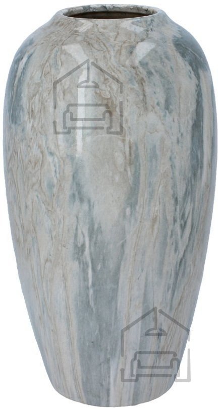 Vaza je izdelana iz keramike, materiala, ki slovi po svoji trdnosti in obstojnosti. Površina je obdelana v imitaciji sivega marmorja, kar doda pridih naravne elegance. Ta barvna kombinacija je zelo priljubljena v sodobnih interierjih, saj se odlično ujema z nevtralnimi toni, kot so bela, bež in črna, pa tudi z živimi barvami, ki poudarijo njen teksturni vzorec. Marmorni videz vaze daje vtis razkošja, vendar brez pretirane bleščavosti – zato deluje urejeno in estetsko dovršeno.