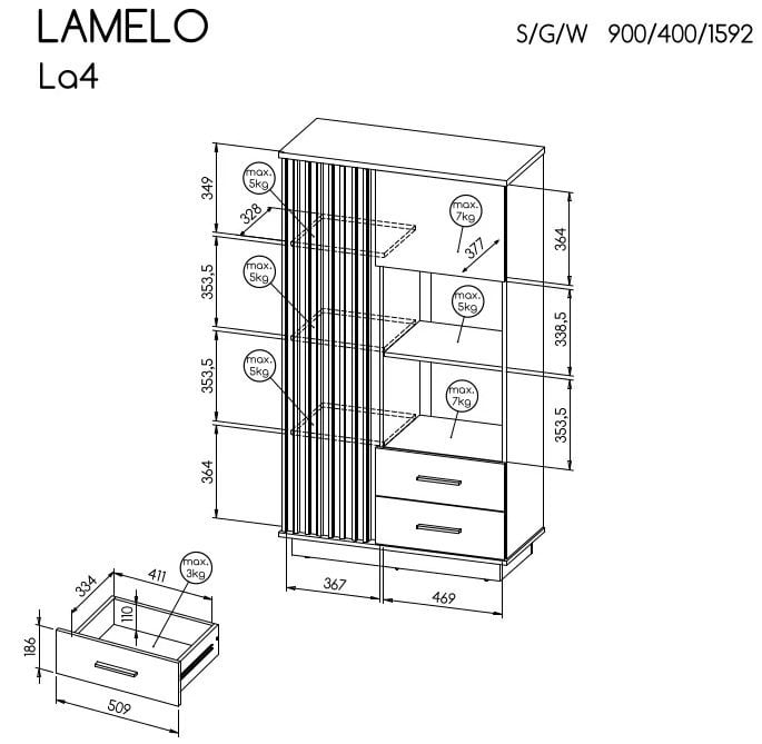 Nizka vitrina je del širše kolekcije Lamelo, ki obsega različne omare, regale, police, pisalno mizo in RTV elemente. To vam omogoča, da svoj prostor opremite v enotnem stilu ter ustvarite harmonično in urejeno okolje. Kolekcija je zasnovana tako, da se posamezni kosi med seboj popolno dopolnjujejo, zato lahko zlahka sestavite dnevno sobo, ki bo ustrezala vašim potrebam in okusu.