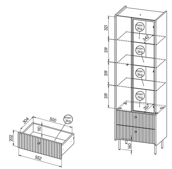 S prefinjeno notranjo razporeditvijo vitrina ponuja dovolj prostora za shranjevanje knjig, dokumentov, dekorativnih predmetov ali drugih osebnih stvari. S steklenimi vrati omogoča eleganten prikaz vaših najlepših kosov, hkrati pa jih ščiti pred prahom. Spodnji zaprt del nudi diskreten prostor za vse, kar želite imeti vedno pri roki, a ne razstavljeno na očeh.