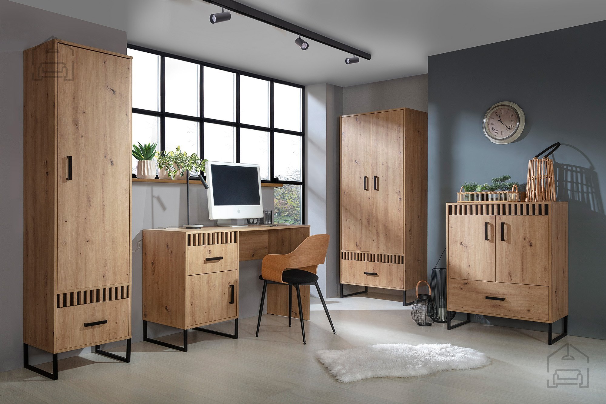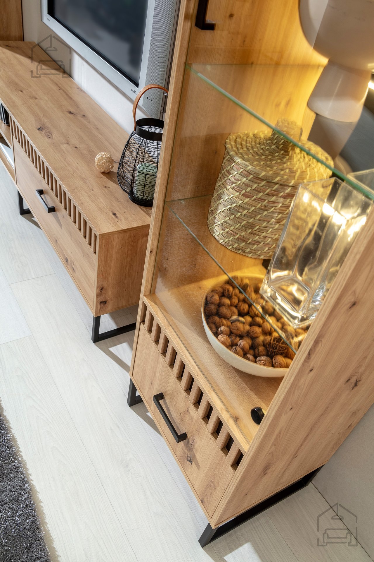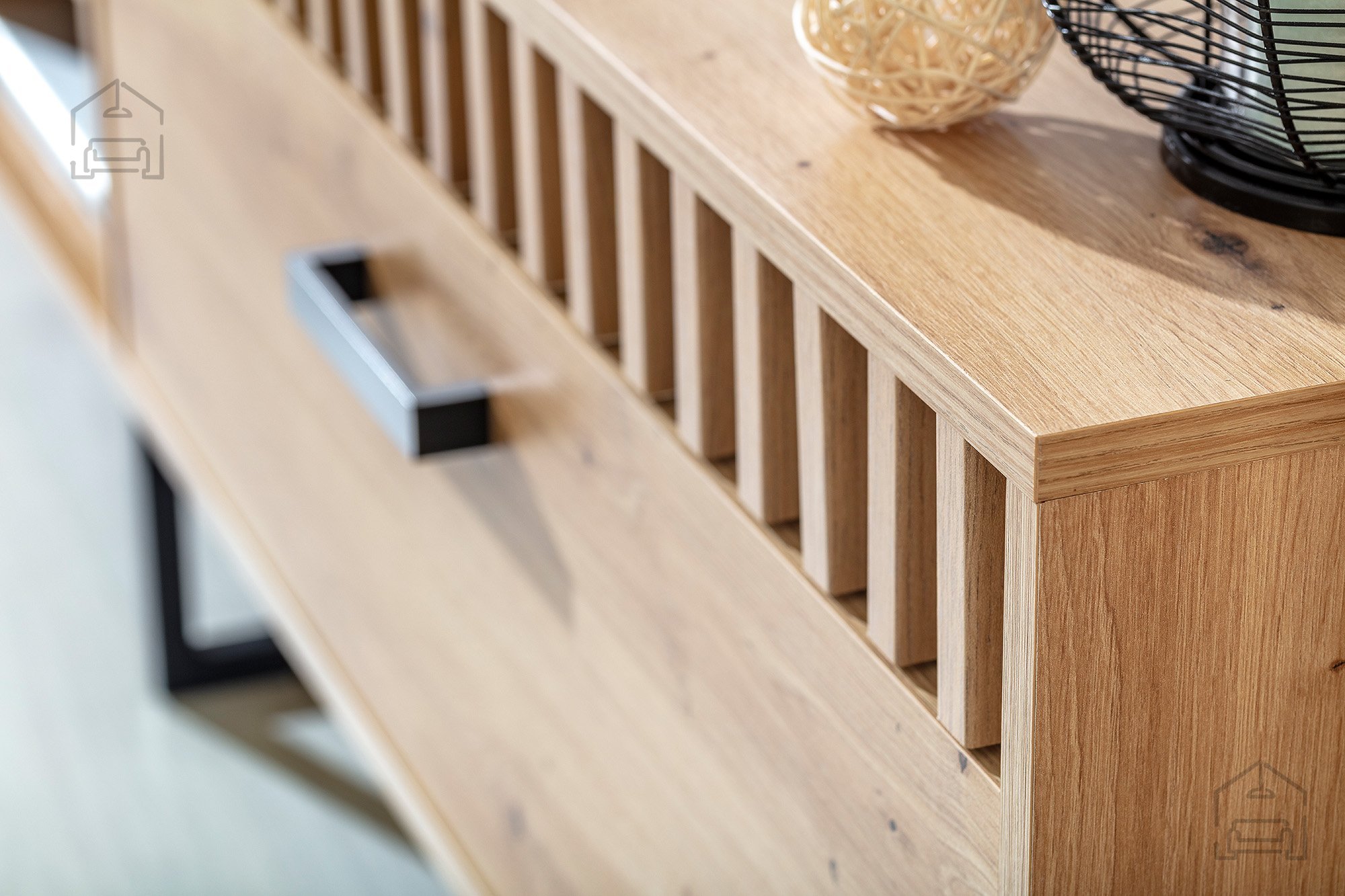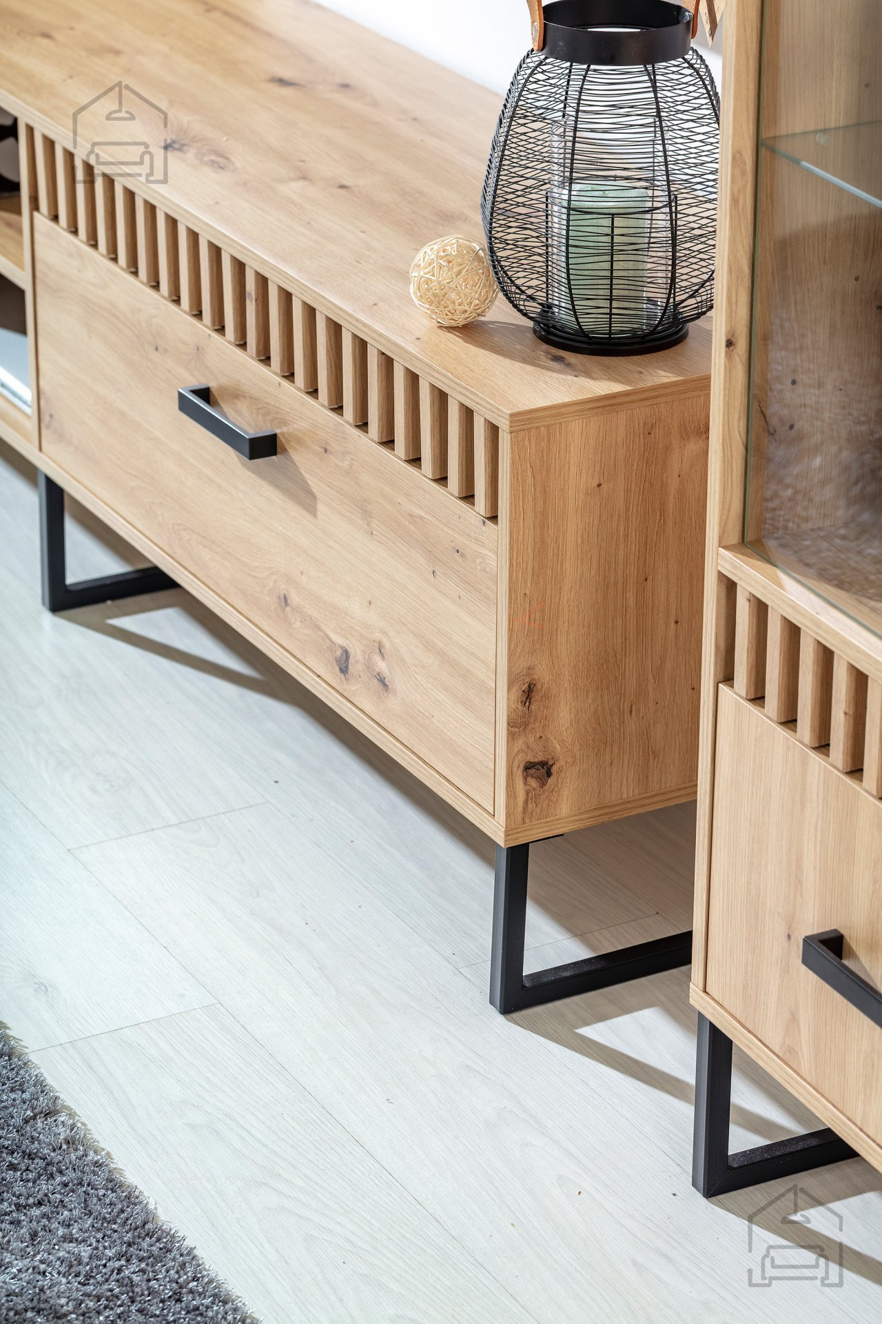 Kolekcija Dnevna soba Lamelix znamke Domel je oblikovana za vse, ki želijo v svojem domu združiti sodoben videz in toplino naravnega lesa. Izdelana je v Poljski iz kakovostne iverne laminirane plošče debeline 16 mm, kar zagotavlja trdnost, stabilnost in odpornost na vsakodnevno uporabo. Površina v odtenku hrasta artisan prinaša občutek pristnosti, ki se lepo ujema z različnimi barvnimi shemami in slogovnimi pristopi – od minimalističnega do industrijskega.