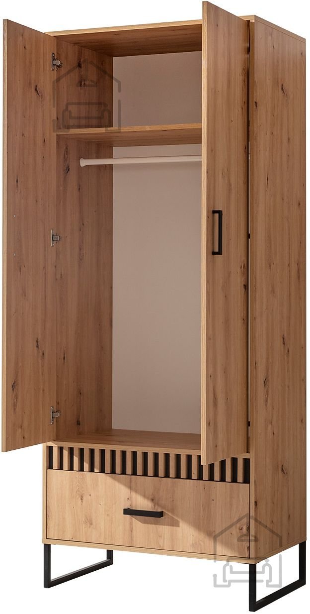 Garderobna omara Lamelix 01 podjetja Domel združuje funkcionalnost, estetsko dovršenost in kakovostno izdelavo. Z dimenzijami 80 × 50 × 195,7 cm je popolna izbira za spalnice, predsobe ali garderobne prostore, kjer je pomembno učinkovito izkoriščanje prostora. Njena zasnova v barvi artisan hrast prinaša občutek topline in naravne elegance, ki se lepo ujema z različnimi notranjimi slogi – od sodobnega minimalizma do klasičnega rustikalnega videza.