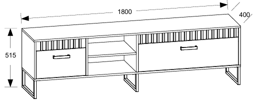 Z merami 180×40×51,5 cm komoda nudi dovolj prostora za televizor, multimedijske naprave in dodatke, ne da bi pri tem zavzela preveč prostora v prostoru. Njena podolgovata oblika omogoča enostavno umestitev ob steno ali pod viseče elemente. Višina 51,5 cm je idealna za udobno gledanje televizije, medtem ko globina 40 cm omogoča priročno shranjevanje brez občutka utesnjenosti.