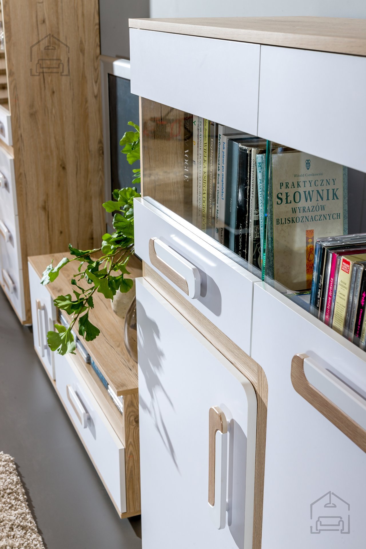 Vitrina Apetito 16 je del širše kolekcije Apetito, ki vključuje različne elemente za opremo dnevne sobe in jedilnice. To omogoča enostavno kombiniranje pohištva v enoten slog. Svetel hrast in bela barva se lepo ujemata z nevtralnimi toni sten, tal in tekstila, zato se vitrina zlahka vključi v obstoječo notranjo opremo. Ne glede na to, ali jo uporabite samostojno ali kot del večje sestave, vedno deluje elegantno in uravnoteženo.