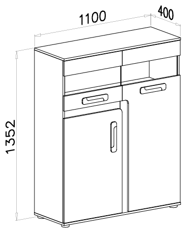 Zaradi premišljenega razmerja med širino in višino se lepo prilega ob steno ali v kombinacijo z drugimi elementi linije Apetito. Police v notranjosti so opremljene z krogličnimi vodili, kar omogoča gladko in tiho odpiranje ter zapiranje. Robovi so zaščiteni z ABS robnim trakom debeline 0,5 mm, ki dodatno povečuje odpornost na udarce in poškodbe ter preprečuje vdor vlage v notranjost plošče.