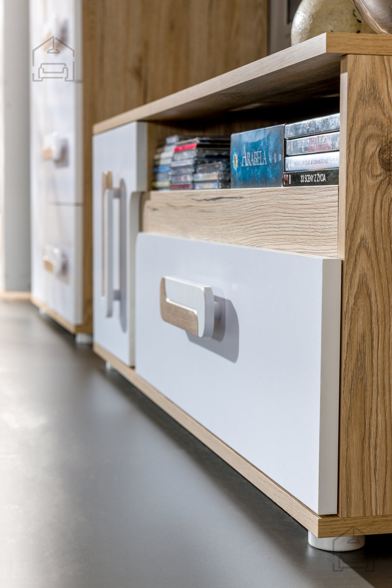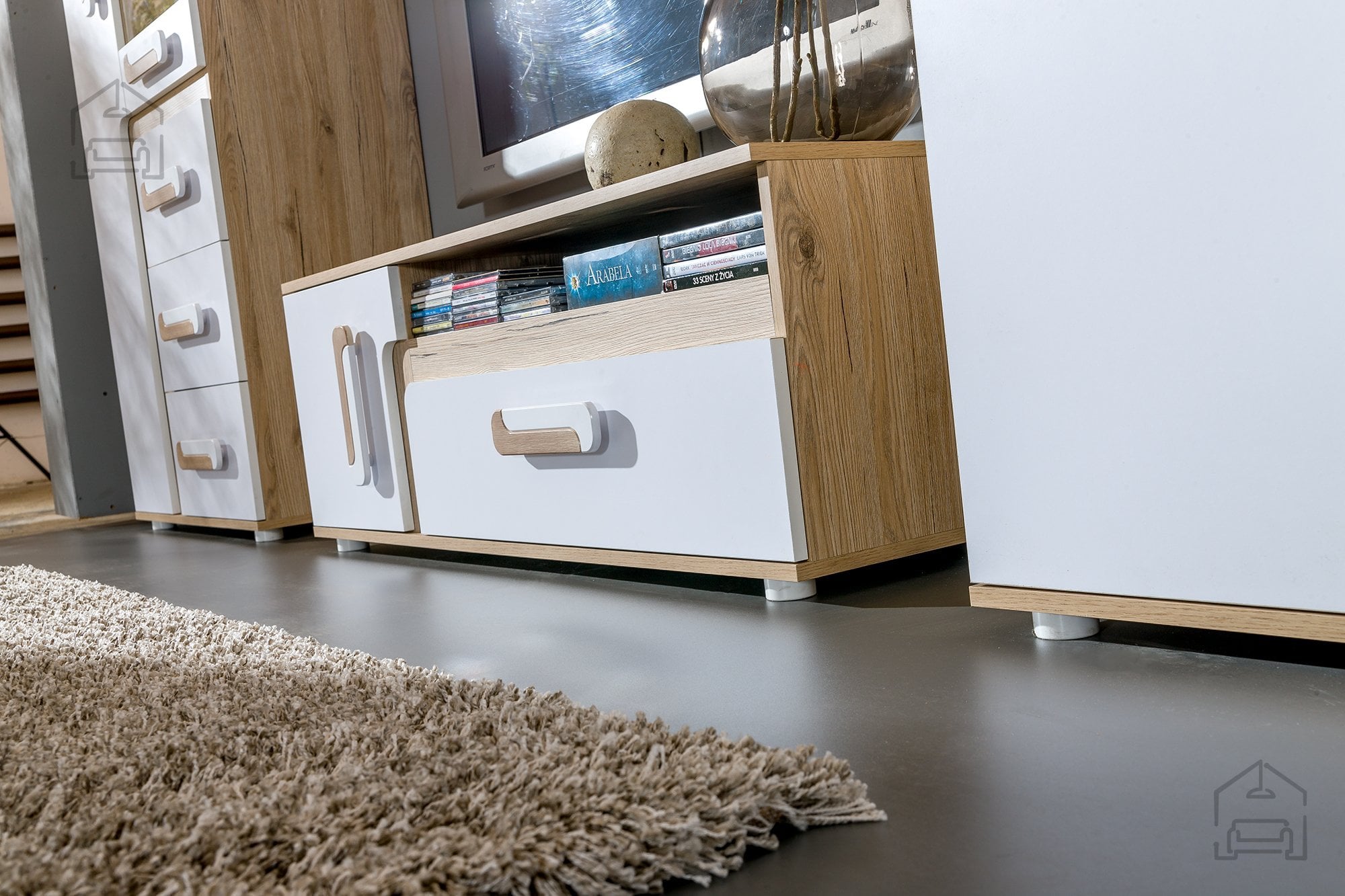 TV komoda Apetito 17 Domel se odlikuje po uravnoteženem oblikovanju, ki združuje funkcionalnost in estetiko. Svetel hrast deluje naravno in toplo, bela barva pa vnaša svežino in sodobnost. Takšna kombinacija omogoča, da se kos lepo ujema z različnimi notranjimi slogi – od skandinavskega do minimalističnega ali klasičnega. Zaradi nevtralnih barv se komoda lahko uporabi kot samostojen poudarek v prostoru ali kot del večjega pohištvenega sestava iz serije Apetito.