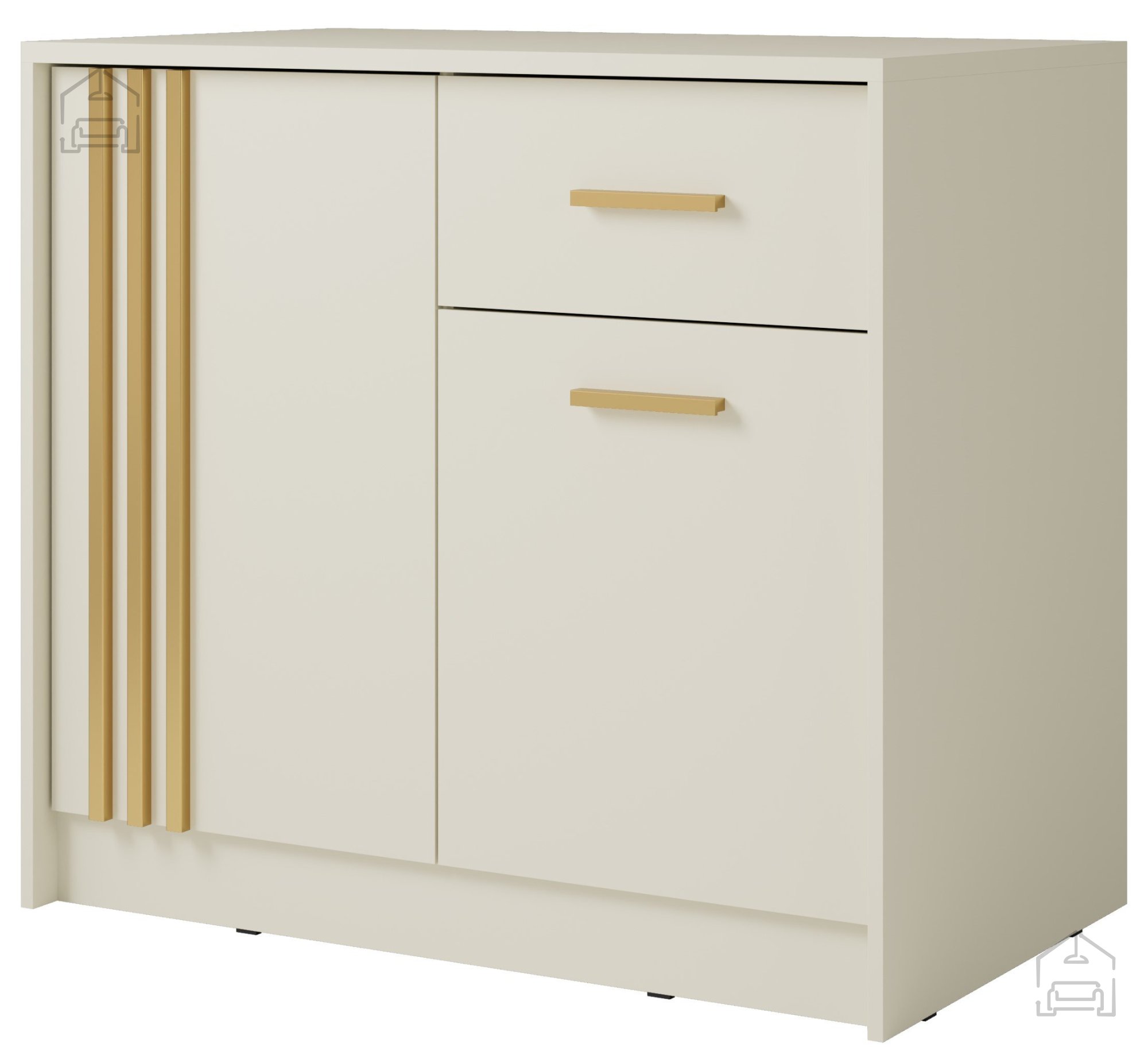 Komoda Canada CY-35 znamke Fadome združuje sodoben dizajn, funkcionalnost in toplino naravnih materialov. Izdelana je iz kakovostne laminirane plošče, MDF-ja in lesa, kar zagotavlja trdnost, stabilnost in dolgo življenjsko dobo. Njene kompaktne mere 102x42x94 cm omogočajo enostavno umestitev v različne prostore, ne da bi pri tem žrtvovali prostornost za shranjevanje. Površina v nežnem odtenku kašmir dopolnjuje elegantne zlate ročaje, kar ustvarja prefinjen vizualni vtis, primeren za sodobne in klasične interierje.