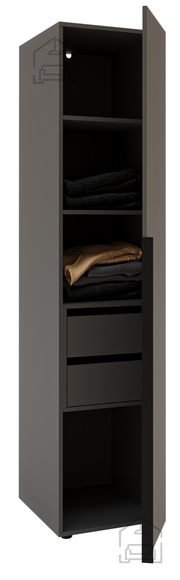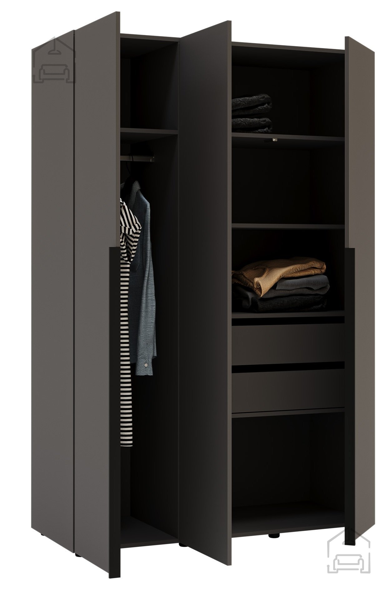 Zaradi univerzalnega dizajna v temno sivi barvi se predali zlahka zlijejo z notranjostjo omare in ohranijo eleganten videz. Tako ne boste poskrbeli samo za večjo urejenost, temveč tudi za estetsko dovršenost svoje garderobne rešitve.