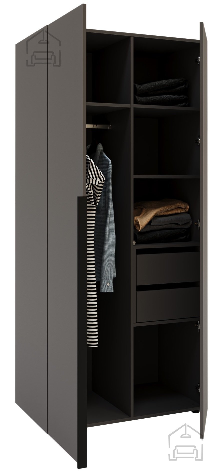 Izberite set predalov v grafitno sivi barvi in ustvarite garderobo, ki bo vsak dan navduševala s svojo urejenostjo in praktičnostjo.