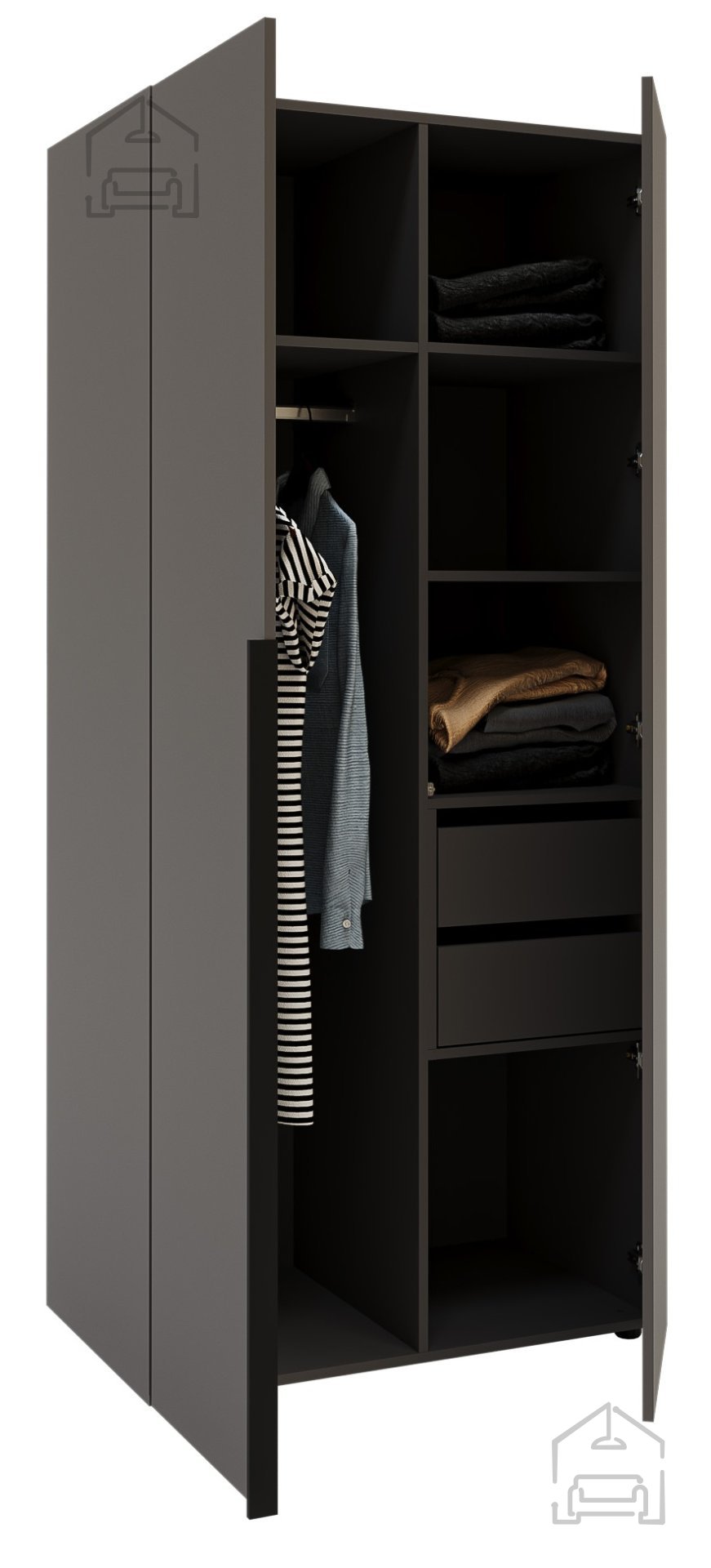 Če želite svoji garderobni omari dodati praktičnost, preglednost in estetski videz, je ta set predalov odlična izbira. Zasnovan je posebej za garderobne omare Solo 2D Sh in omogoča, da svoj prostor organizirate na preprost, a hkrati eleganten način. Predali v moderni grafitno sivi barvi se popolnoma ujemajo z različnimi stili notranje opreme ter v vaš dom vnesejo pridih sodobne elegance.