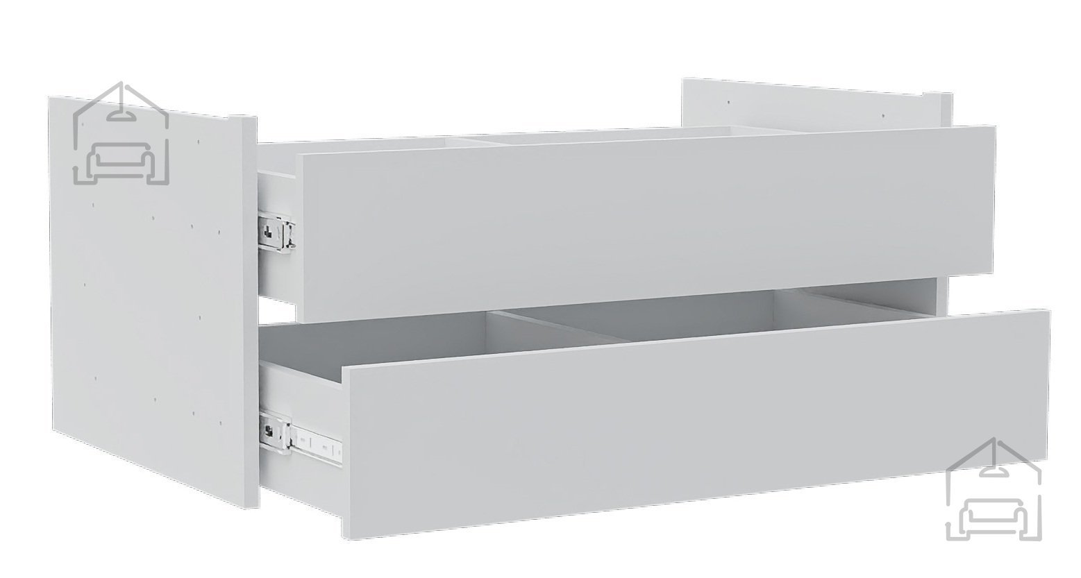 Set predalov je izdelan iz trpežne laminirane plošče debeline 16 mm, kar zagotavlja dolgo življenjsko dobo in odpornost proti obrabi. Površina v barvi nimfea alba je hkrati moderna in univerzalna – odlično se ujema z različnimi barvnimi kombinacijami pohištva in interierja. Preproste linije in minimalistična oblika ustvarjajo občutek lahkotnosti, zaradi česar je ta kos pohištva primeren tako za sodobne kot klasične prostore.