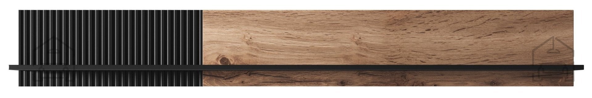 Stenska polica Random P-2 – Halmar združuje sodoben videz, praktičnost in kakovostno izdelavo. Izdelana je iz trpežnega laminiranega MDF materiala v barvni kombinaciji hrast votan in črna, ki prostoru dodaja naravno toplino z elegantnim kontrastom. Z dimenzijami 180x20x25 cm ponuja dovolj prostora za odlaganje dekorativnih predmetov, knjig ali uporabnih dodatkov, hkrati pa ohranja minimalističen videz brez nepotrebnih elementov. Polica je primerna za dnevno sobo, spalnico ali pisarno, kjer s svojo preprosto, a dovršeno obliko poudari sodoben slog notranje opreme.