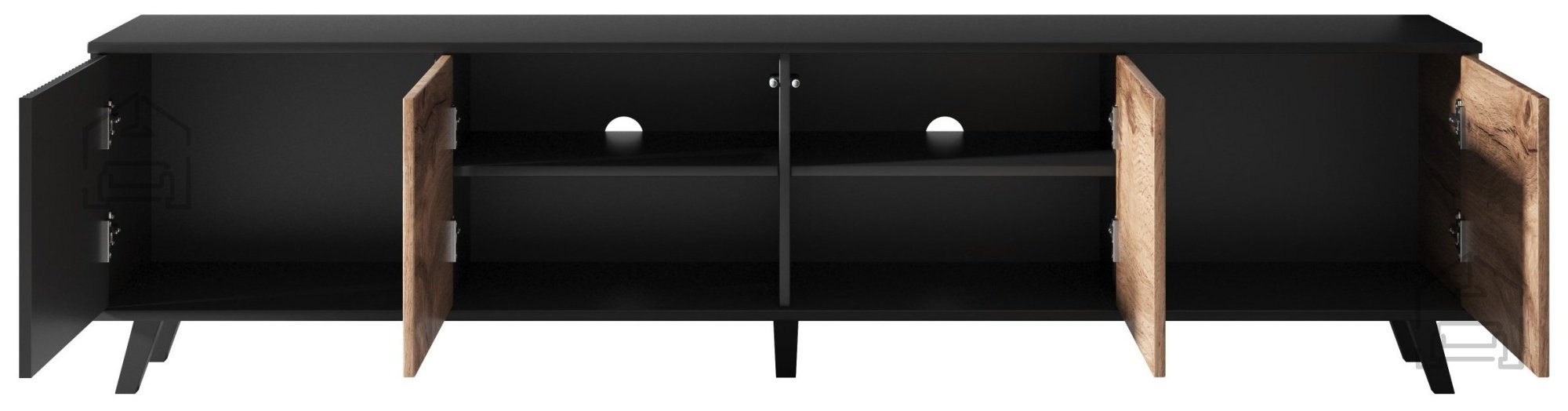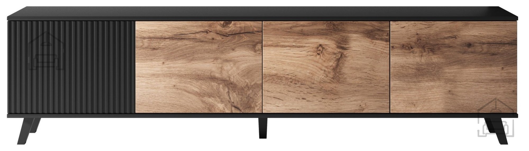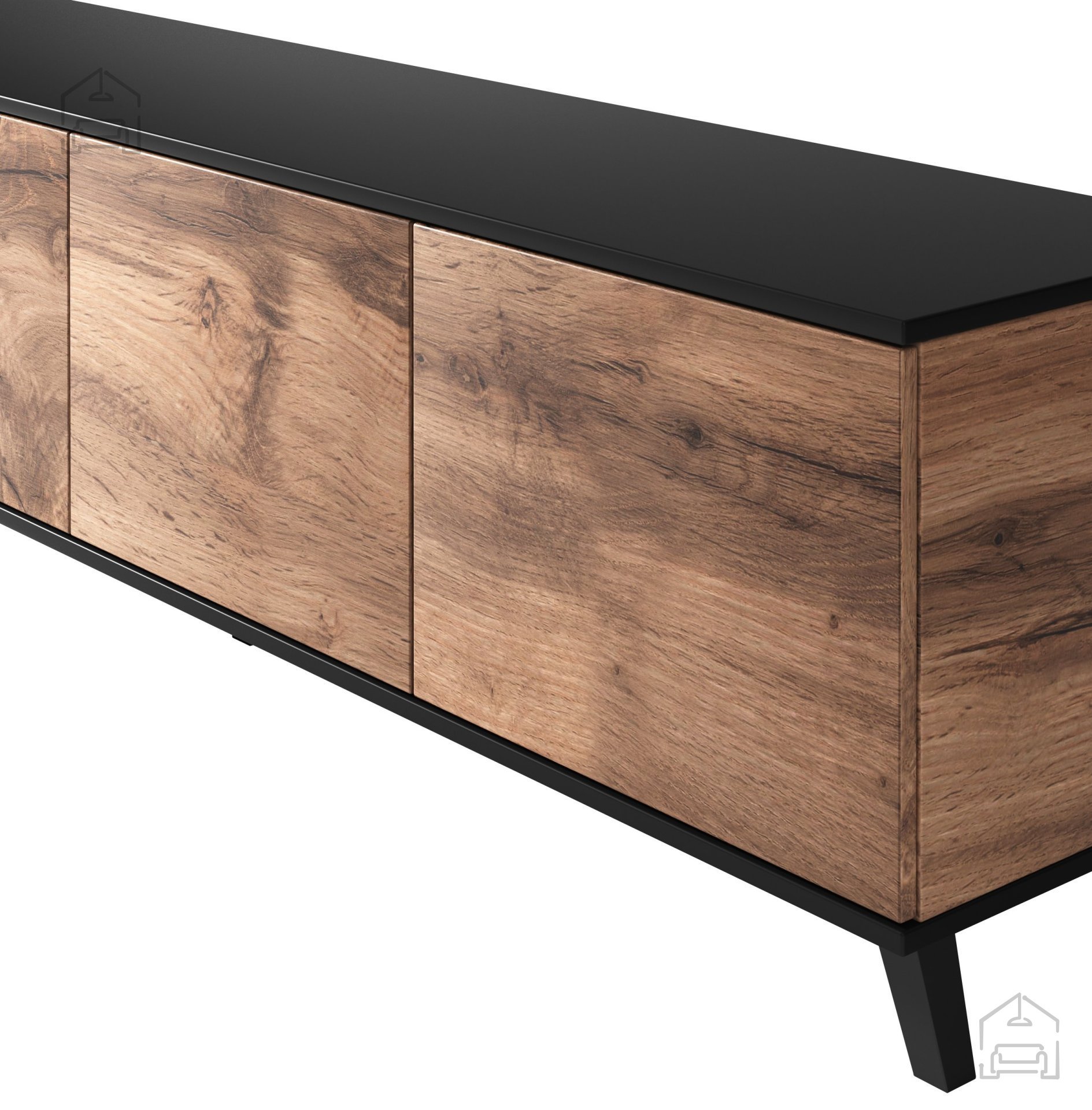 TV komoda Random RTV-3 – Halmar je sodoben in funkcionalen kos pohištva, ki v prostor vnese toplino naravnega videza lesa ter prefinjen kontrast črne barve. Z dolžino 200 cm, globino 40 cm in višino 52 cm ponuja dovolj prostora za televizorje večjih dimenzij ter shranjevanje multimedijskih naprav, kablov in dodatkov. Kombinacija hrasta votan in črne barve daje komodi značilen industrijski videz, ki se lepo ujema s sodobnimi notranjimi slogi, hkrati pa ostaja dovolj nevtralen, da se prilega tudi klasičnim ambientom.