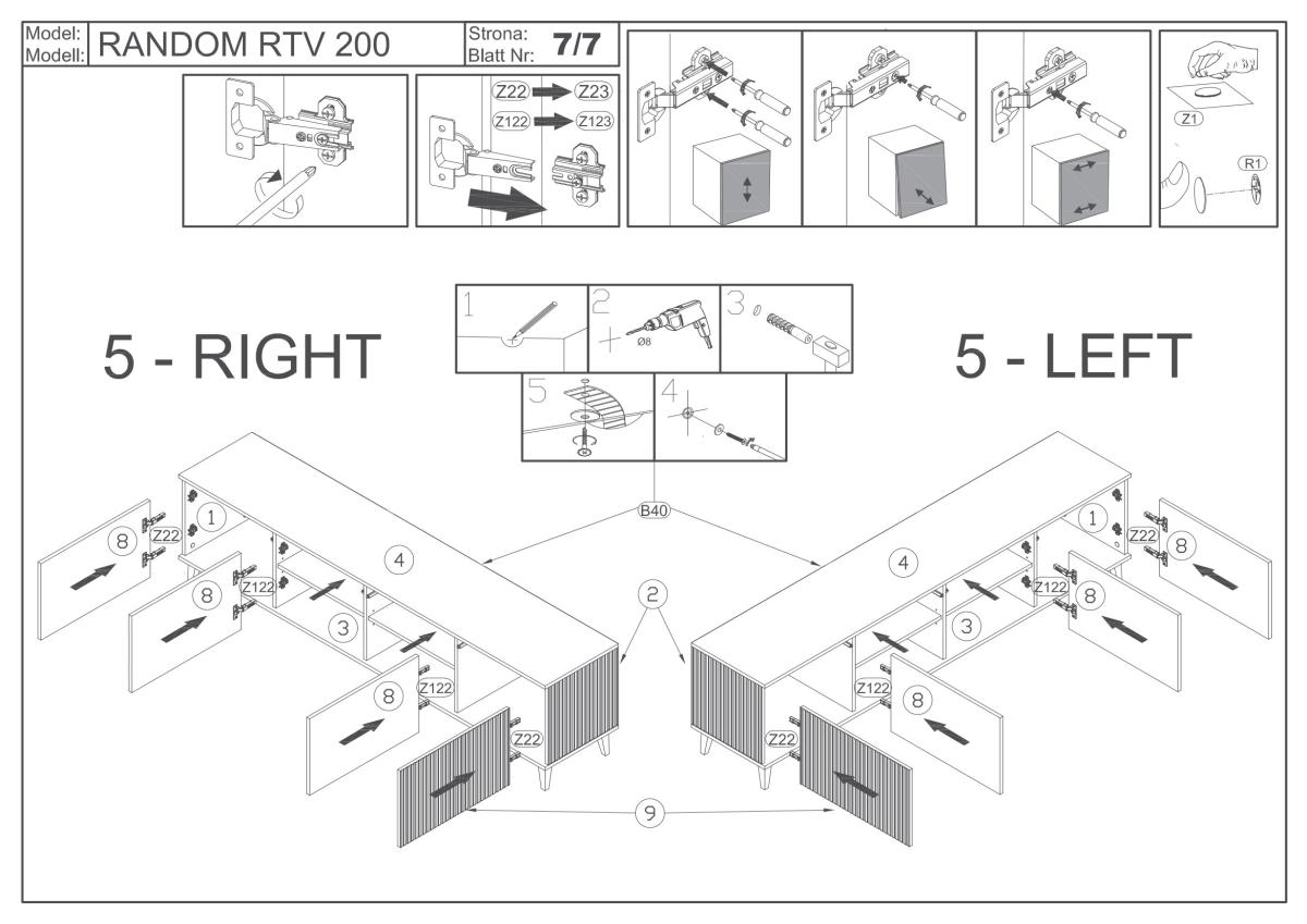 Komoda Random RTV-3 je zasnovana tako, da omogoča urejeno shranjevanje in hkrati estetski videz prostora. Odprtine za kable ali rešitve za prezračevanje multimedijskih naprav pripomorejo k boljšemu pretoku zraka in zmanjšujejo nered. S kombinacijo zaprtih in odprtih površin komoda nudi ravnovesje med funkcionalnostjo in vizualno lahkotnostjo.