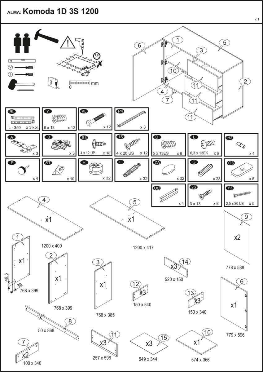 Laminirana plošča 16 mm 90×41,5×120 cm: Komoda Alma 1D3S – Halmar.