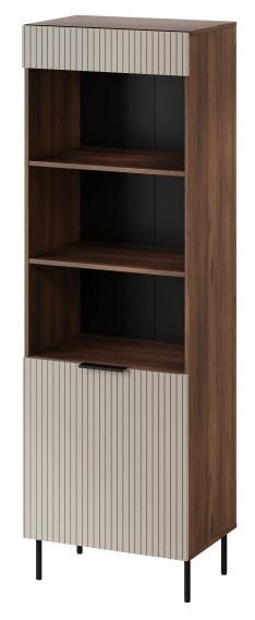 Regal Almera typ 3 je predstavnik sodobnega pohištva, ki se zlahka vključuje v različne interierje. Barva kašmir daje prostoru občutek topline in miru, medtem ko detajli v barvi oreha dodajajo naravni kontrast. Ta kombinacija ustvarja prijetno ravnovesje med modernim videzom in klasično toplino lesa. Zaradi nevtralnih tonov se regal lepo ujema z različnimi barvnimi shemami in vrstami talnih oblog.