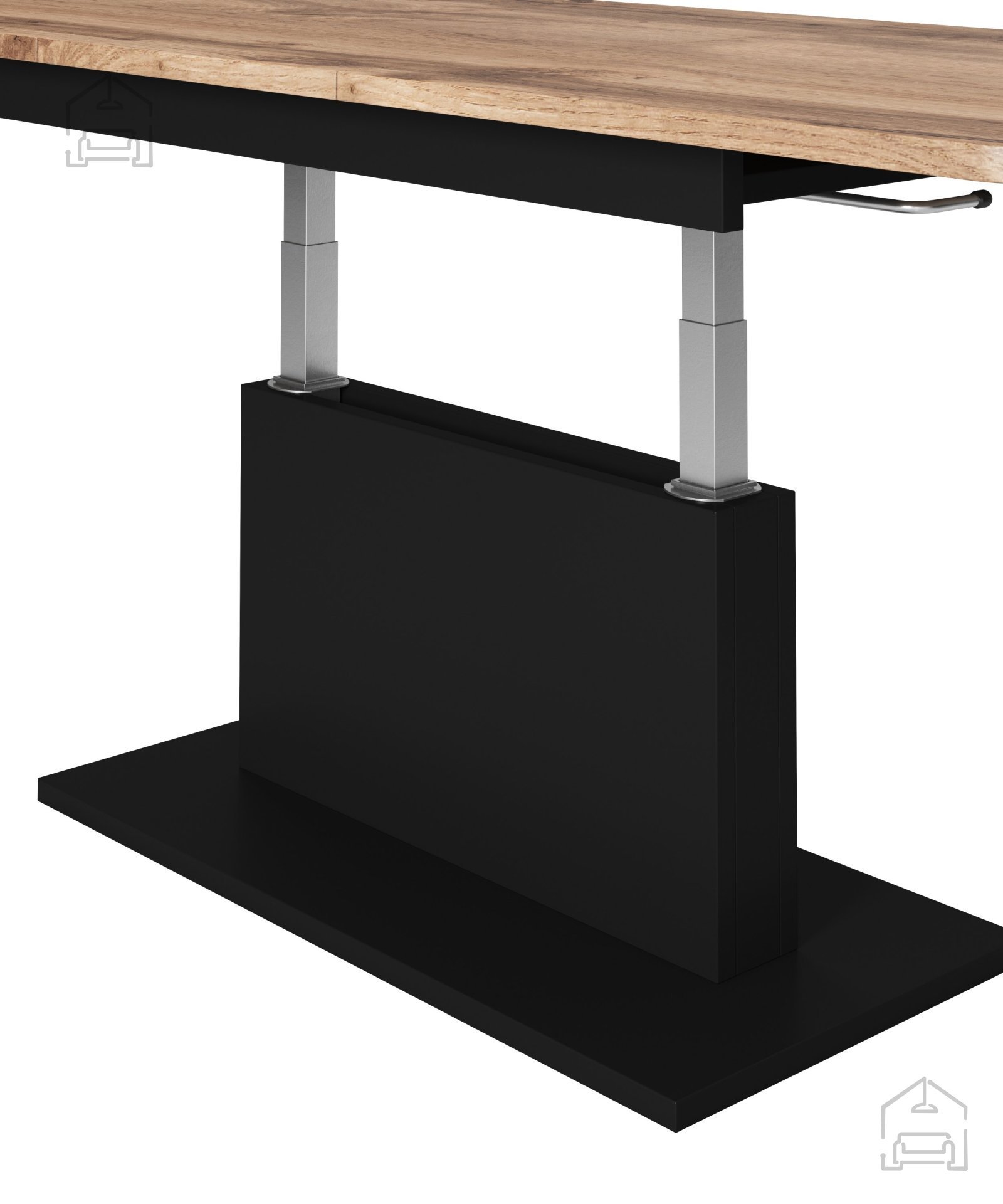 Barva hrast votan prinaša občutek topline in naravnosti, medtem ko črni elementi ustvarjajo sodoben kontrast in elegantno ravnovesje. Takšna kombinacija omogoča, da se miza lepo ujema z različnimi barvnimi shemami prostora. Površina v videzu lesa vnaša prijeten občutek domačnosti, črna podnožja pa poudarjajo sodoben značaj izdelka.