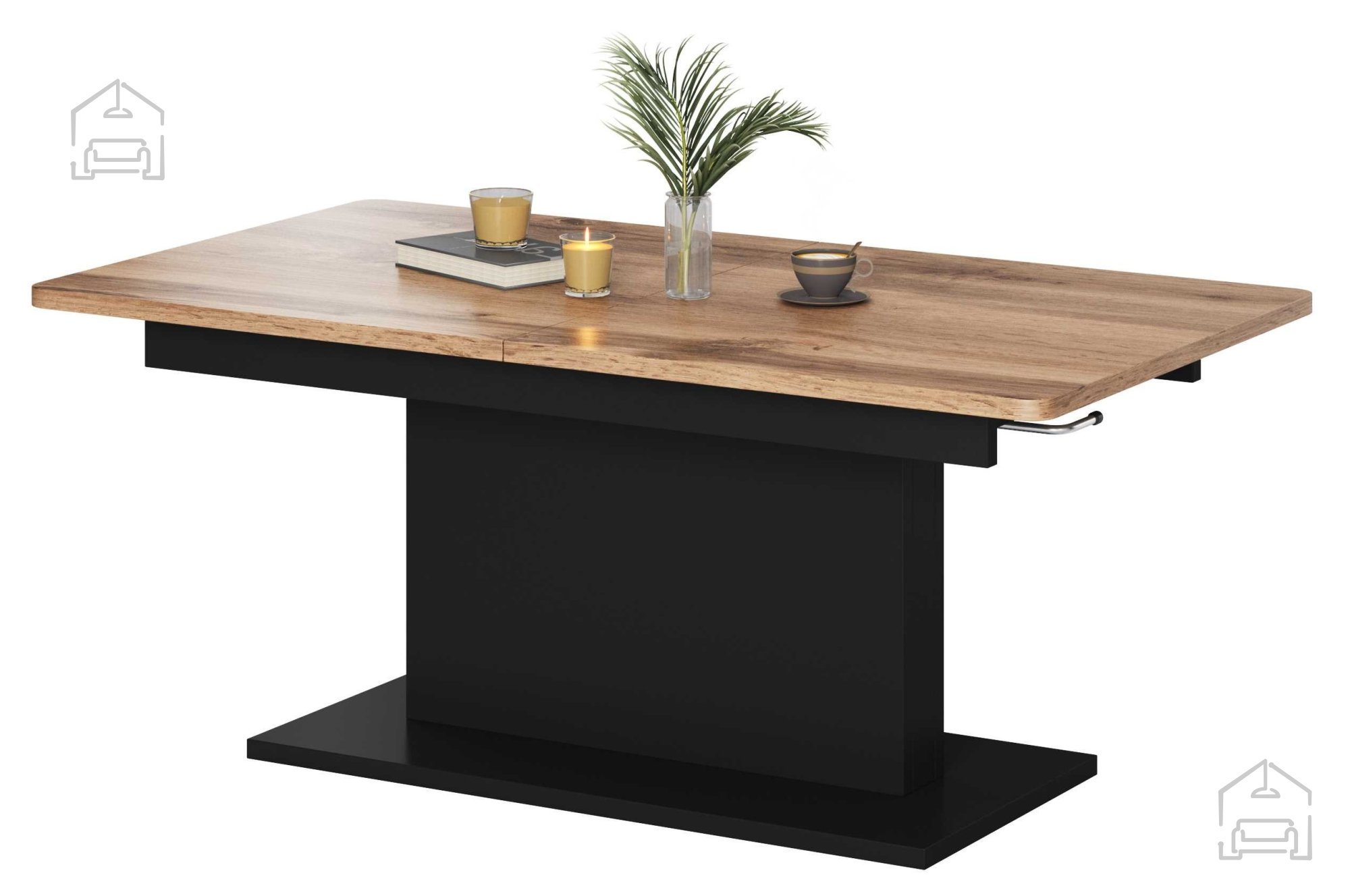 Raztegljiva klubska miza Busetti v barvni kombinaciji hrasta votan in črne je funkcionalen ter estetsko dovršen kos pohištva, primeren za sodobne dnevne sobe. Njen premišljeno oblikovan mehanizem raztegovanja omogoča enostavno prilagoditev dolžine in višine, kar pomeni, da se lahko miza v trenutku spremeni iz nizke klubske mize v udobno jedilno površino. S tem ponuja odlično rešitev za manjše prostore ali za vse, ki cenijo vsestranskost in praktičnost.