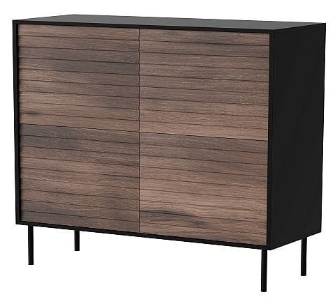 Elegantna črna in topla orehova barva: Komoda Cortina 100 cm 4D – Halmar.