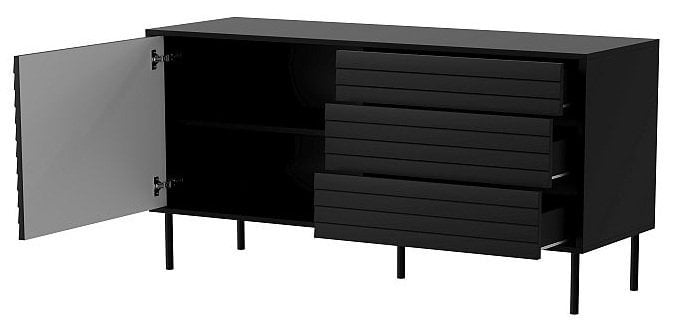 Komoda Cortina 120 cm 1D3S – Halmar je odlična izbira za vse, ki cenijo čist dizajn, funkcionalnost in kakovostno izdelavo. S svojo preprosto, a izrazito estetsko podobo postane osrednji kos prostora, hkrati pa ponuja zanesljiv prostor za shranjevanje vsakdanjih predmetov. Črna površina in kovinski detajli ustvarjajo eleganten kontrast, ki prostoru dodaja značaj in sodobno energijo.