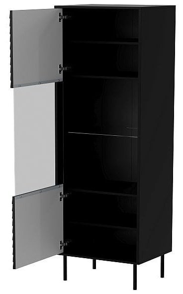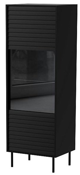Vitrina Cortina – Halmar je izraz sodobne preprostosti in funkcionalnega oblikovanja, ki se popolnoma ujema z današnjimi trendi notranje opreme. S svojimi natančno določenimi merami 53x40x182 cm ponuja ravnotežje med kompaktnostjo in prostornostjo, zaradi česar je primerna tako za manjše dnevne prostore kot za večje bivalne ambiente. Črna barva v kombinaciji s kovinskimi nogami višine 20 cm daje vitrini pridih industrijskega minimalizma, medtem ko sistem odpiranja PUSH TO OPEN poskrbi za čiste linije brez vidnih ročajev.