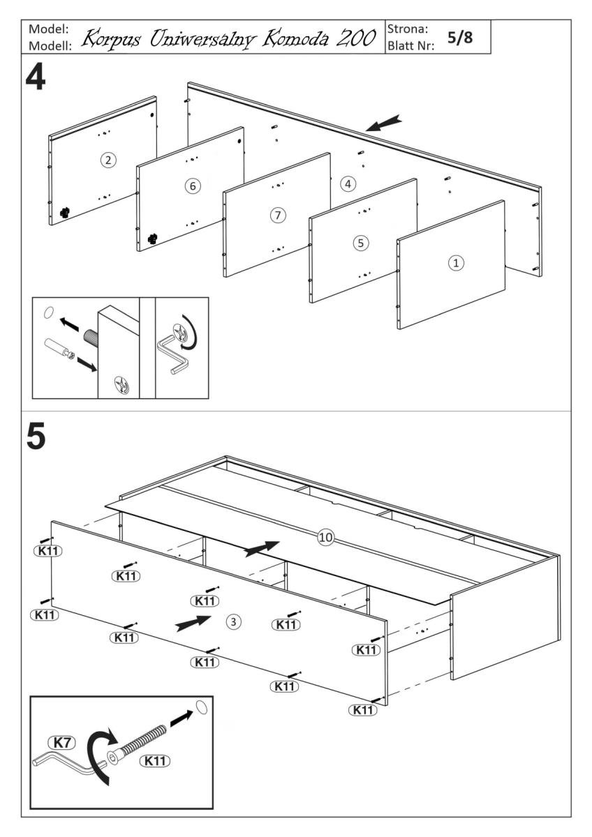 Pri širini 200 cm, globini 42 cm in višini 82 cm komoda ponuja veliko uporabne površine zgoraj, ki je lahko namenjena dekorativnim elementom, svetilki ali ogledalu. Notranjost je zasnovana za optimalno shranjevanje oblačil, dokumentov ali drugih gospodinjskih predmetov. S skupno težo 67 kg in prostornino 141,12 dm³ je izdelek dovolj robusten, da prenese obremenitve vsakodnevne uporabe, a vseeno primeren za postavitev tudi na občutljivejše talne obloge.