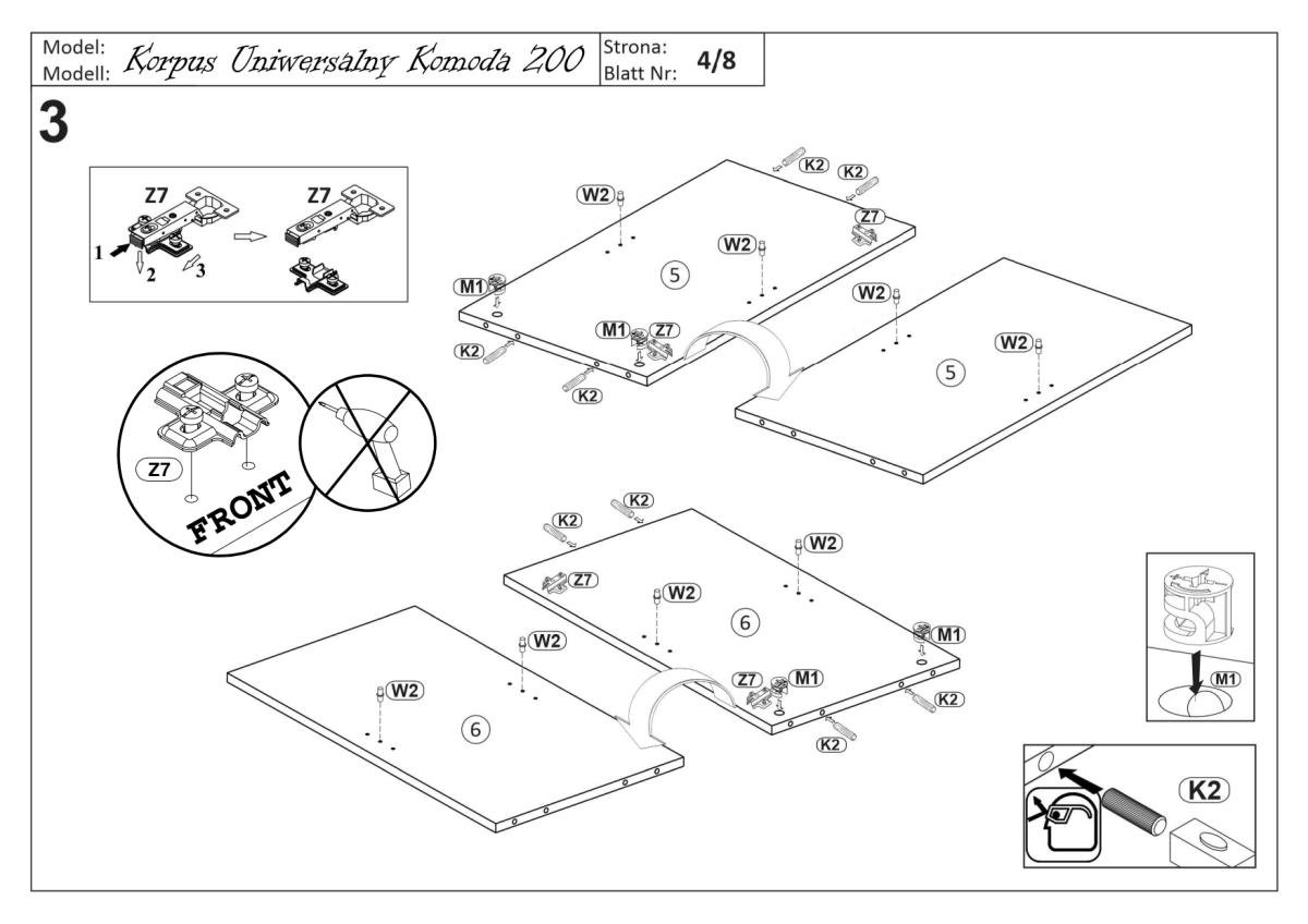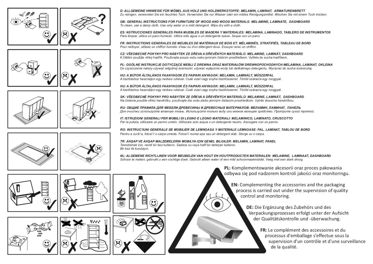 Komoda stoji na diskretnih plastičnih nogah, ki zagotavljajo stabilnost in ščitijo tla pred praskami. Njihova nizka zasnova ne posega v celoten videz, temveč poudari lebdeč učinek ohišja. Zaradi preprostih linij in ergonomskih rešitev je vzdrževanje komode preprosto – površine se zlahka obrišejo z mehko, vlažno krpo.