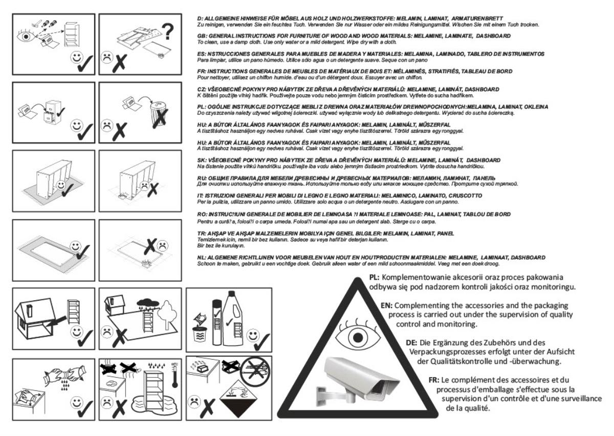 Ohišje komode je izdelano iz mat laminirane plošče debeline 16 mm, kar zagotavlja trdnost in odpornost proti praskam ter vsakodnevni obrabi. Frontni deli so iz MDF plošče, prevlečene z laminatom in PVC folijo, kar dodatno ščiti površino pred vlago in omogoča enostavno čiščenje. Zaradi kakovostne obdelave so vsi robovi natančno zaključeni, kar prispeva k elegantnemu videzu in občutku celovitosti.